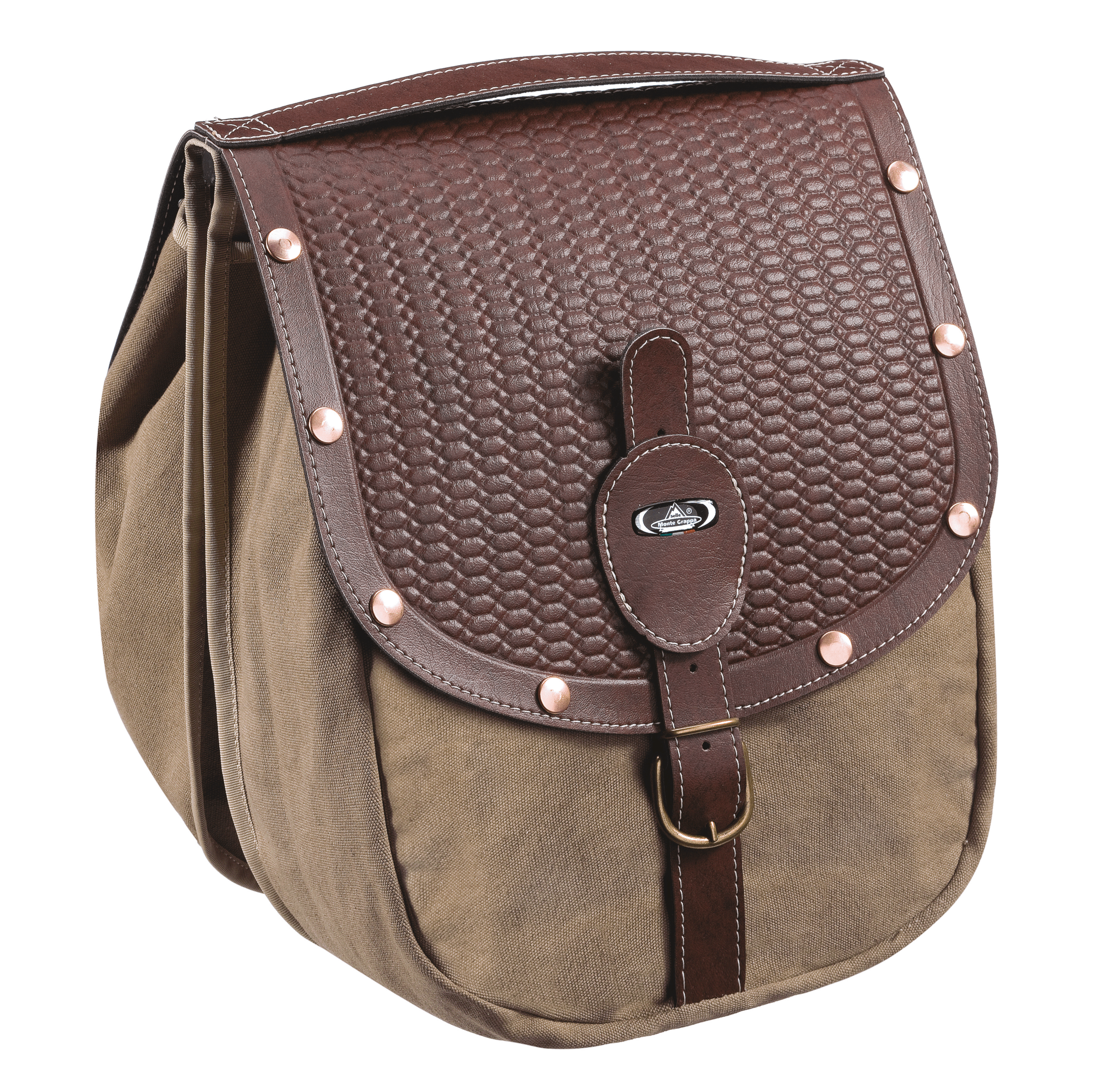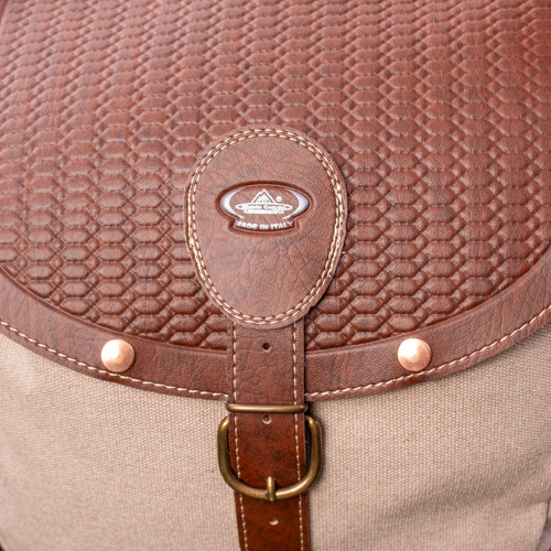De British Bisaccia van Selle Monte Grappa is een luxueuze dubbele fietstas. De bovenkant van tas is gemaakt van skai-leer en de onderkant is van canvas. De tas is uitgevoerd in het donkerbruin. De onderkant is iets lichter dan het bovenste gedeelte met de flap.