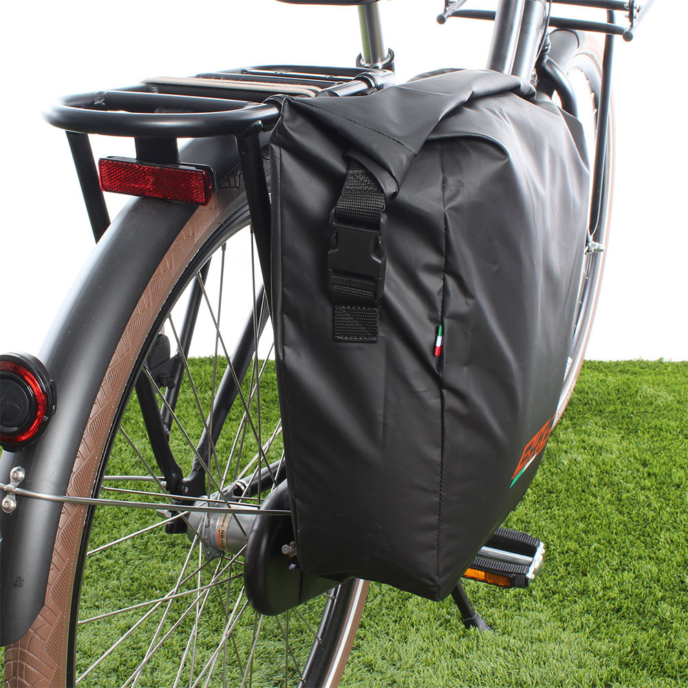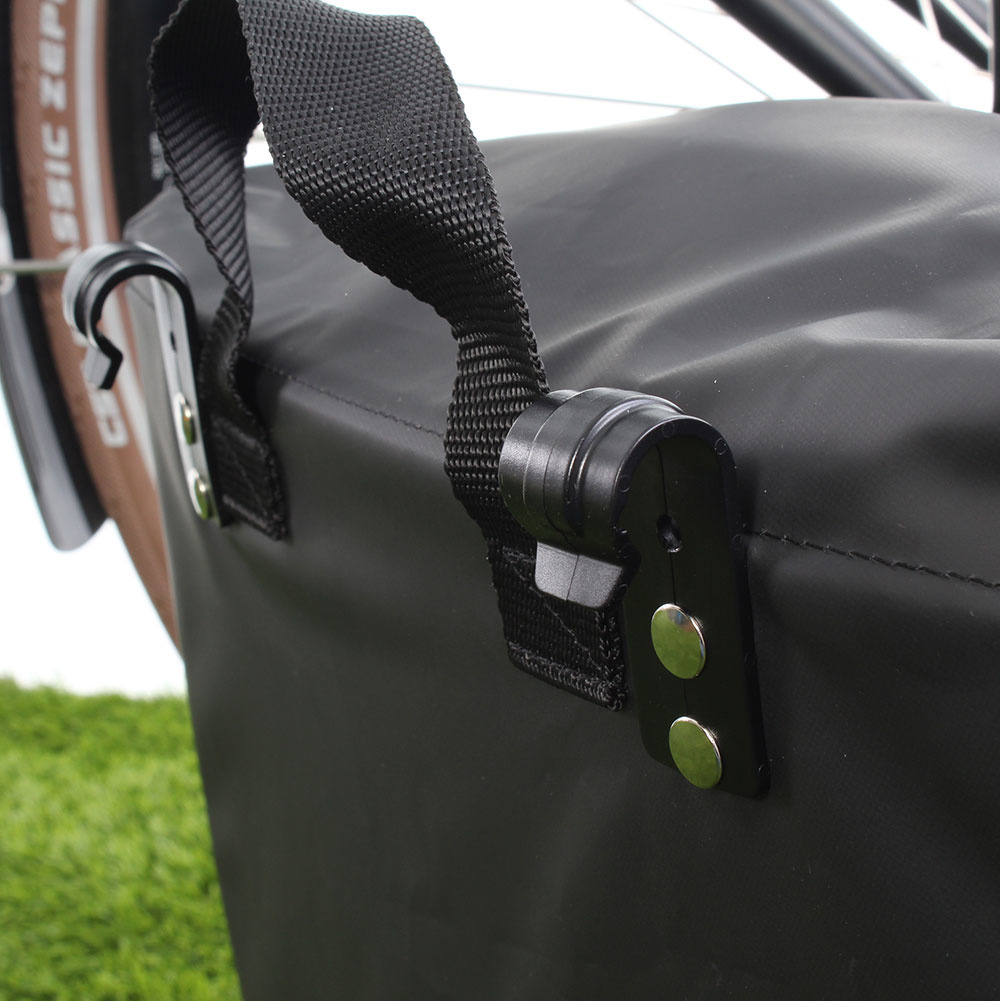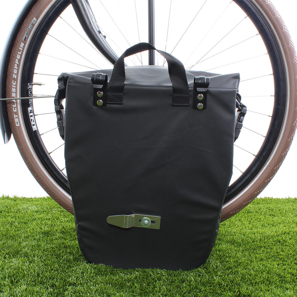 Deze enkele fietstas bevestigt u eenvoudig op de bagagedrager met twee klemmen. Deze klemmen zijn geschikt voor een dragerbuis met een diameter van maximaal 10 tot 16 millimeter. U heeft hier te maken met een echte pakaftas, wat inhoudt dat u de tas met één simpele beweging weer van de fiets haalt.