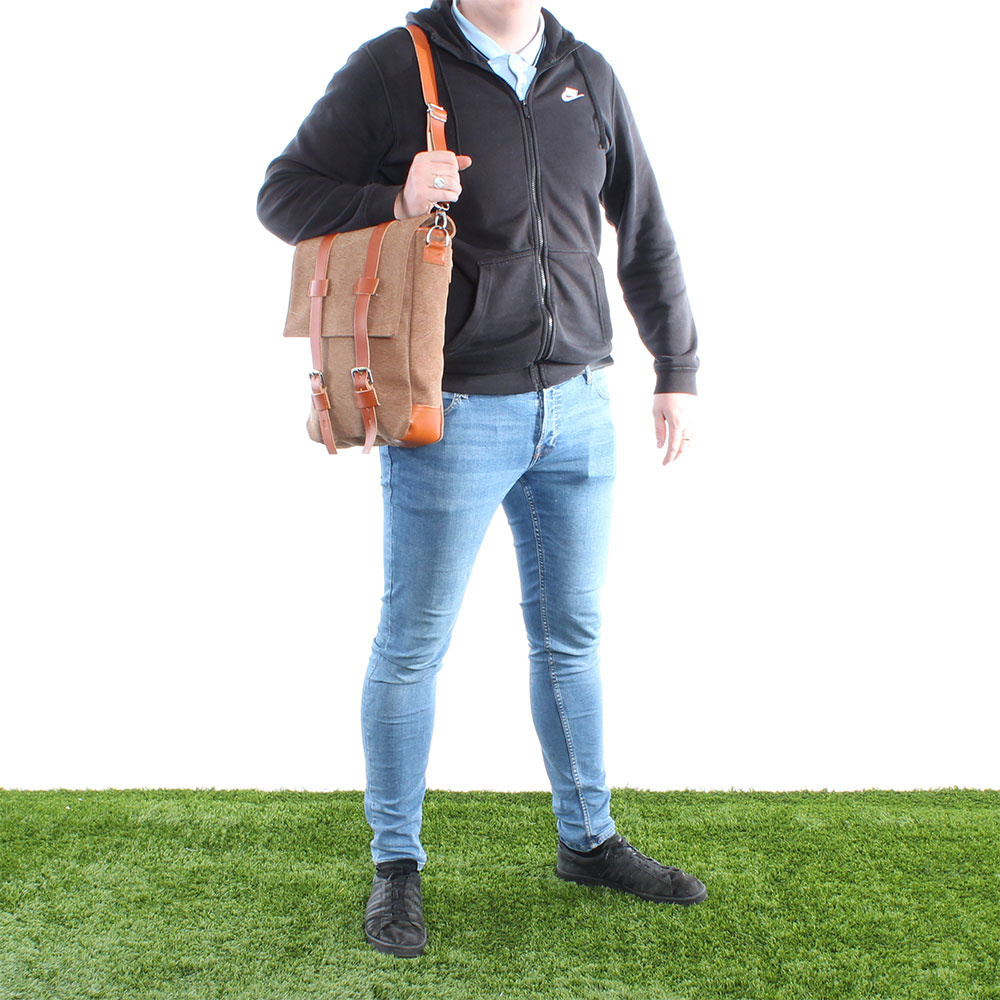 Deze tas van het Italiaanse merk Selle Monte Grappa is gemaakt van 100% natuurlijke jutevezels. De stof voelt sterk en tegelijkertijd soepel aan. De leren details geven de tas een moderne uitstraling en de kleur van deze tas zorgt juist voor een retro look.