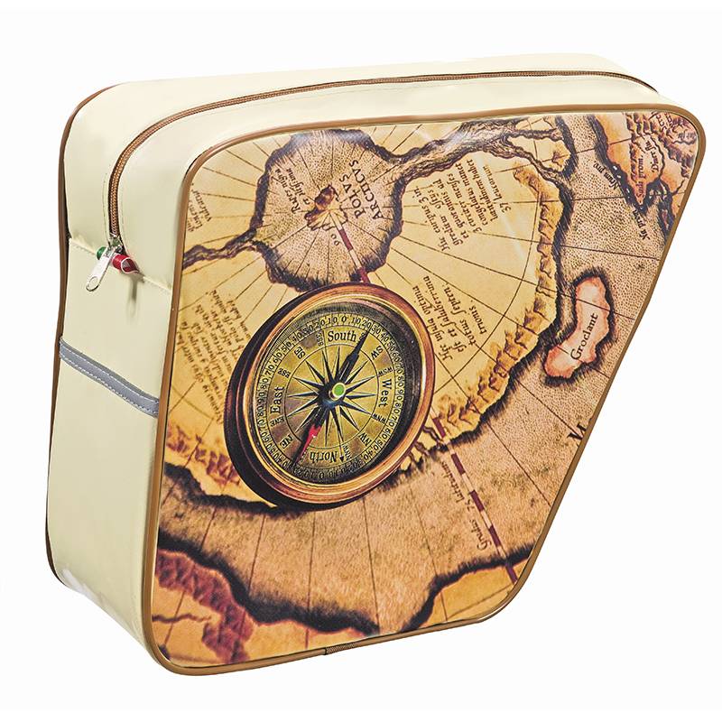 Compact en zeer stijlvol. Dat is deze fietstassenset van Selle Monte Grappa. Alle tassen van Selle Monte Grappa worden geheel in Italië ontworpen en gemaakt. Deze fietstassenset North heeft een uniek design dat bestaat uit een landkaart en een kompas. Bent u op zoek naar een zeer bijzondere fietstas en wilt u niet een standaard tas van bisonyl? Dan is deze North voor u gemaakt. De zeer fraaie set bestaat uit twee enkele pakaftassen (links en rechts) en biedt een opbergruimte van ongeveer 20 liter. U bevestigt de tassen met haakjes aan de bagagedrager. Mocht u een E-bike bezitten, let dan even op of dit gaat passen met de accu. De fietstassen zijn gemaakt van hoogwaardig skai-leder en zijn weersbestendig. Inclusief reflecterende strepen en schuine zijden voor makkelijker trappen.