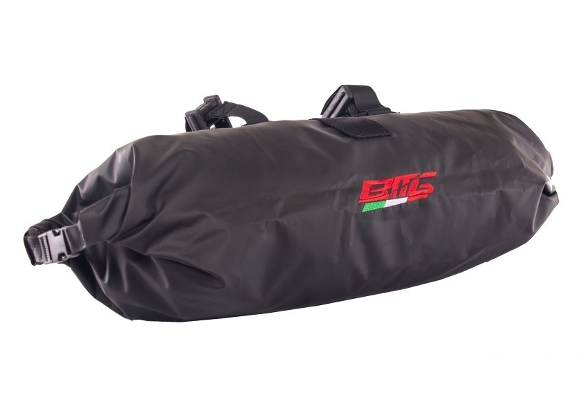 Deze stuurtas is uitgevoerd in de kleur zwart en heeft een inhoud van 12 liter. De tas is onderdeel van de BMG serie en is uitermate geschikt voor bike-packing. Uiteraard waterproof en aan beide kanten af te sluiten met een rol-top sluiting. Deze stuurtas heeft twee compressiebanden voor het meenemen van extra bagage zoals een kledingstuk of slaapmat. Op de tas staat een BMG logo in de kleuren van de Italiaanse vlag afgebeeld.