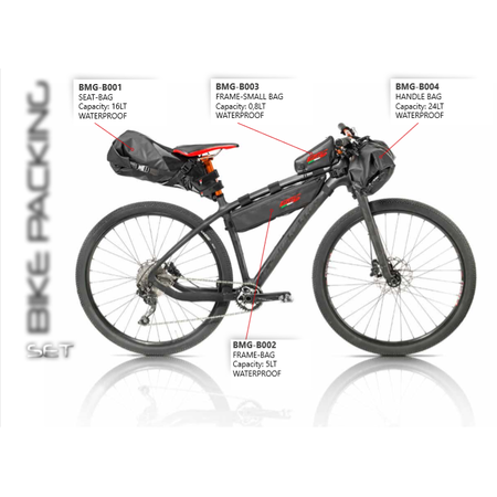 Deze frametas is uitgevoerd in de kleur zwart en onderdeel van de BMG serie. Deze tassen zijn uitermate geschikt voor bike-packing. Uiteraard is deze frametas waterproof en af te sluiten met een rits. Op de tas staat een BMG logo in de kleuren van de Italiaanse vlag afgebeeld.