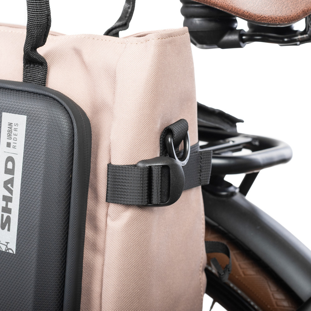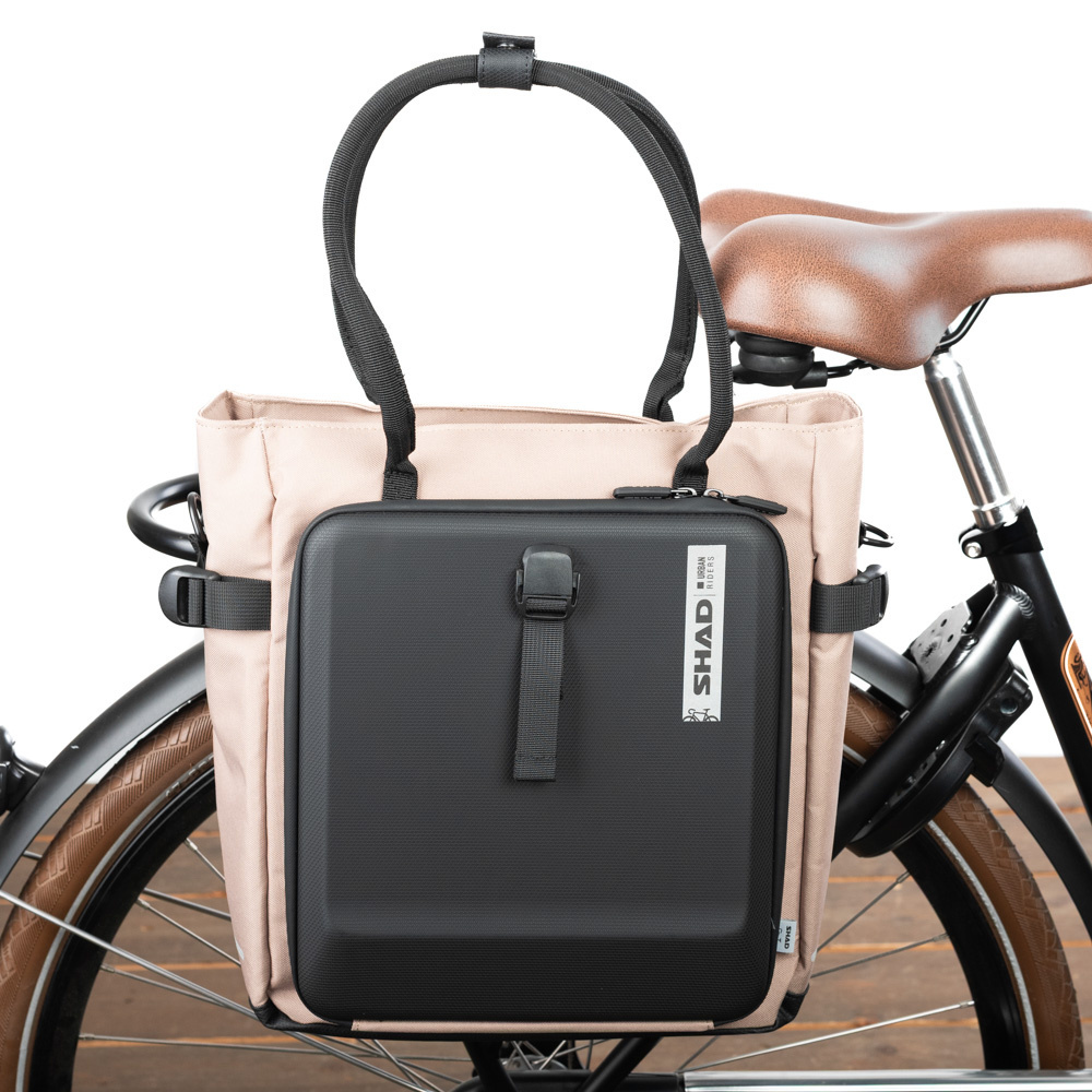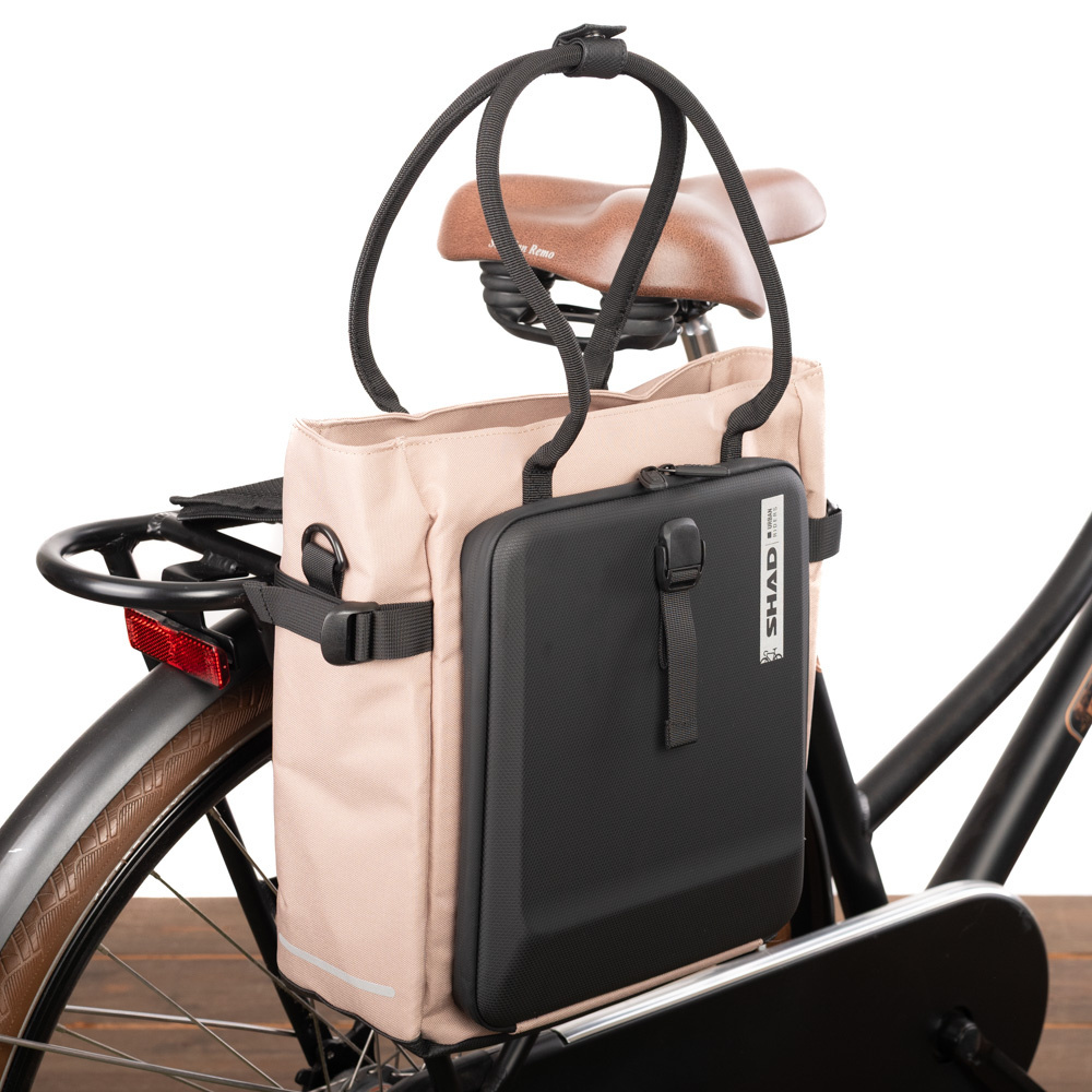 De Daily Tote Bag van het merk Shad is een moderne enkele fietstas en schoudertas, met een inhoud van ca. 16 liter. De duurzame fietstas is gemaakt van gerecycled polyester afkomstig van plastic flessen. De taupekleurige shopper fietstas is uitgerust met een laptopcompartiment, een schouderriem en een regenhoes. Een ideale eigentijdse 'stadse' fietstas voor dagelijks gebruik!