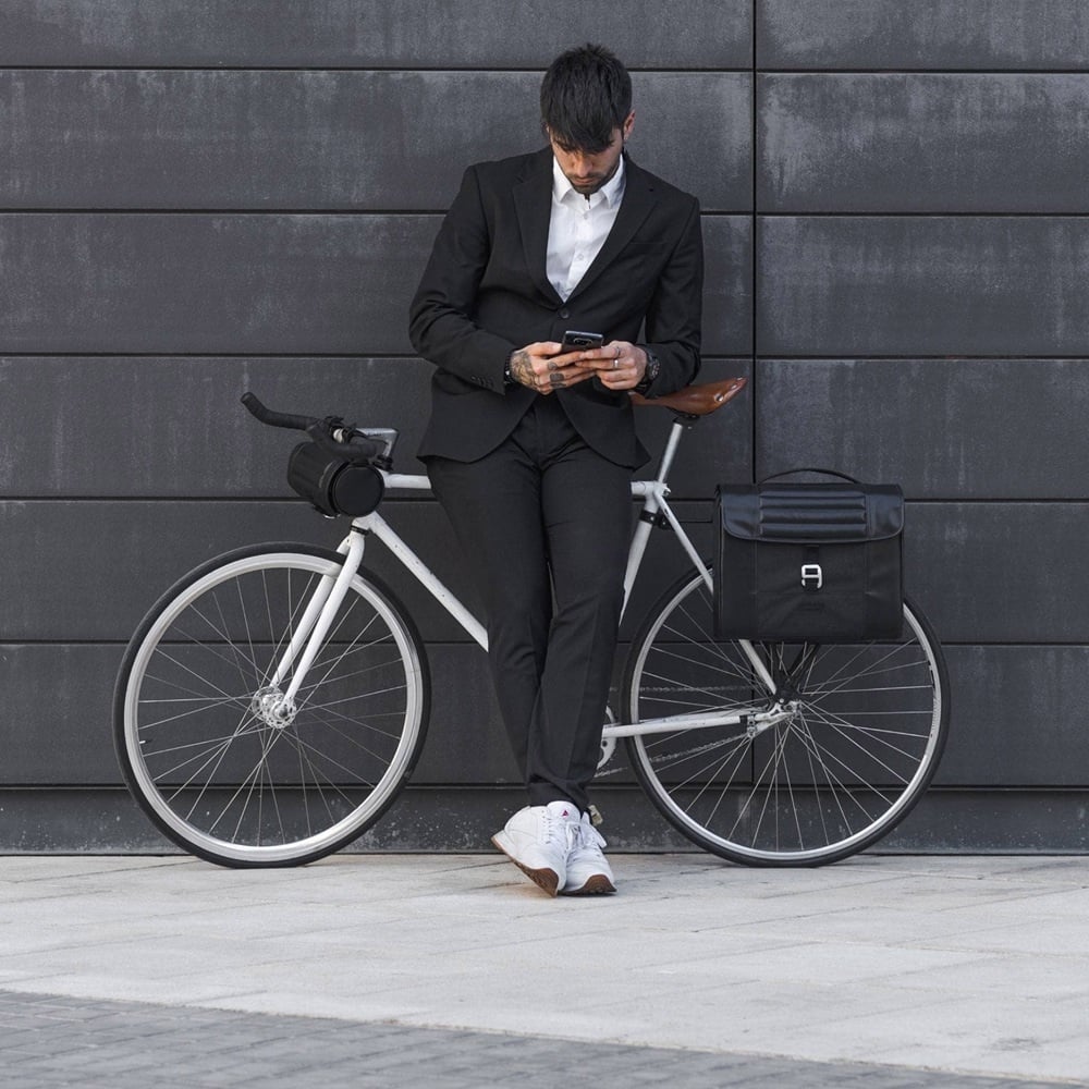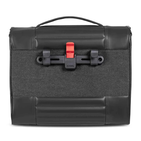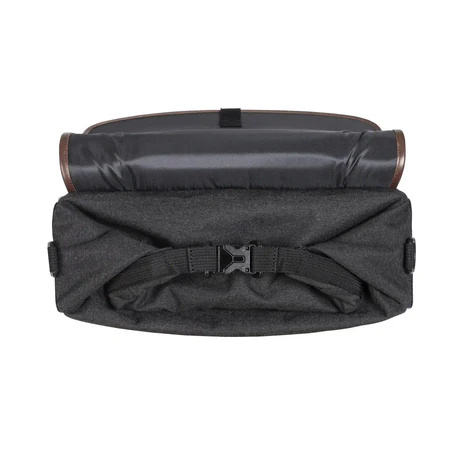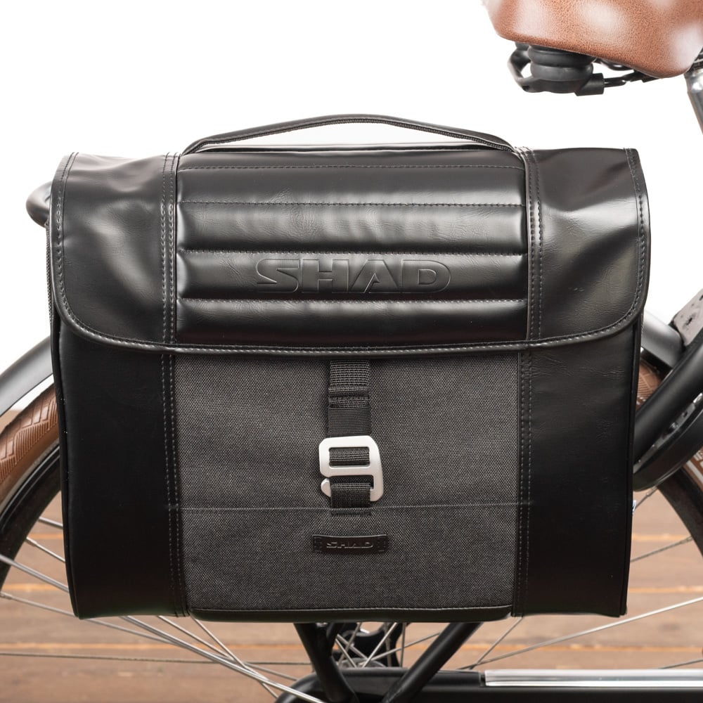 De Genuine Office Bag van het merk Shad is een stijlvolle enkele fietstas en schoudertas met een inhoud van ca. 16 liter. De fietstas is gemaakt van zwart/donkergrijs polyester en zwart UV-bestendig kunstleer. De vormvaste kantoorfietstas heeft een retrolook en is uitgerust met een schouderriem, een rolsluiting en een regenhoes. Een tijdloze fietstas voor wie op de fiets naar kantoor gaat!