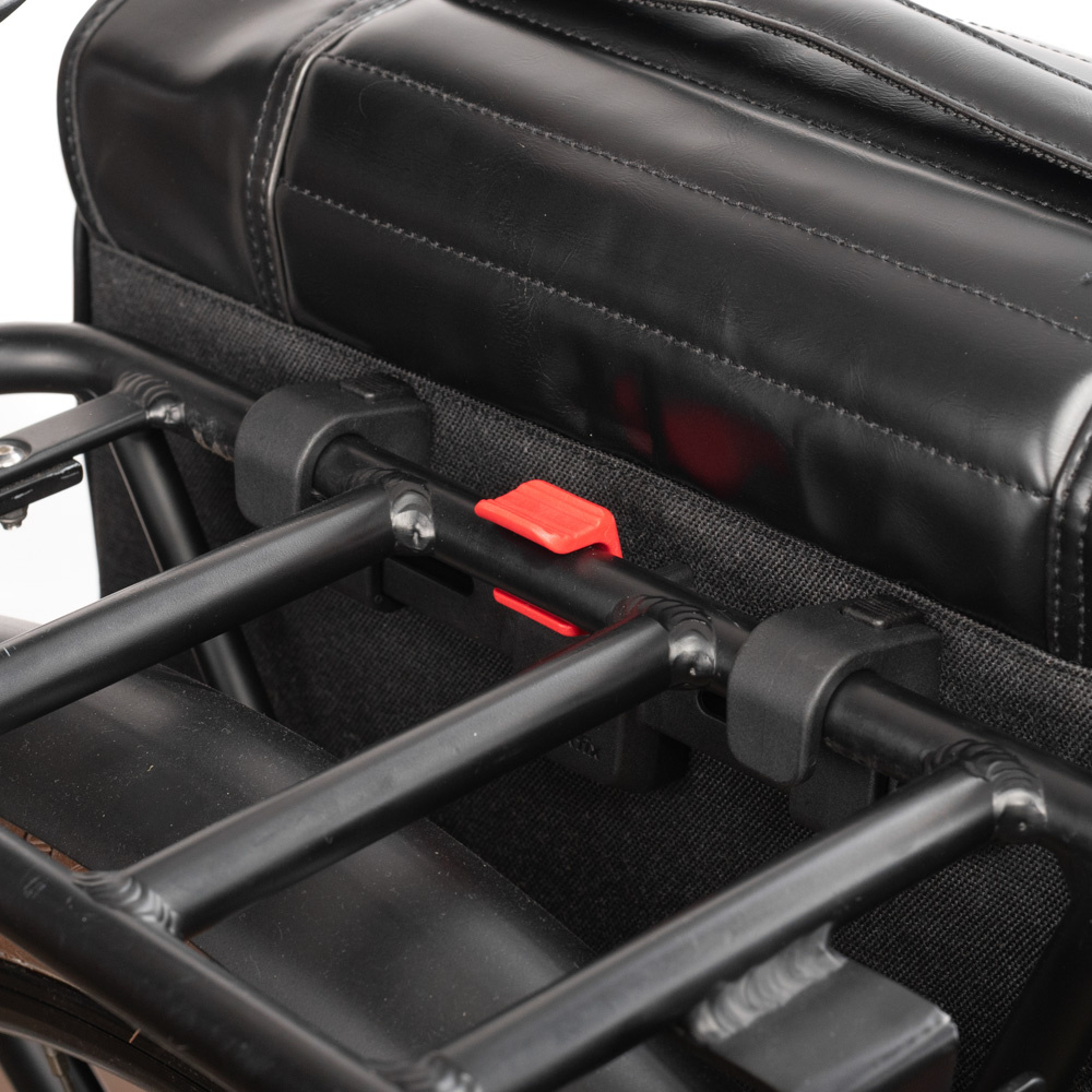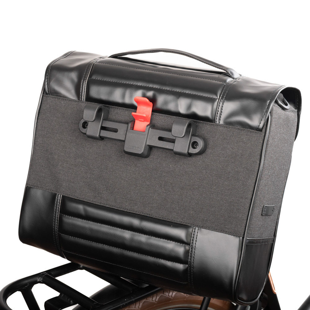 Met het KLICKfix Compact Rail-systeem met Quick Release is de Genuine Office Bag gemakkelijk te bevestigen aan de drager van de fiets. De haken zijn geschikt voor dragers met een buisdikte tussen 8 en 16 millimeter. Met de zwarte drukknopjes zijn de haken zonder gereedschap te verschuiven.