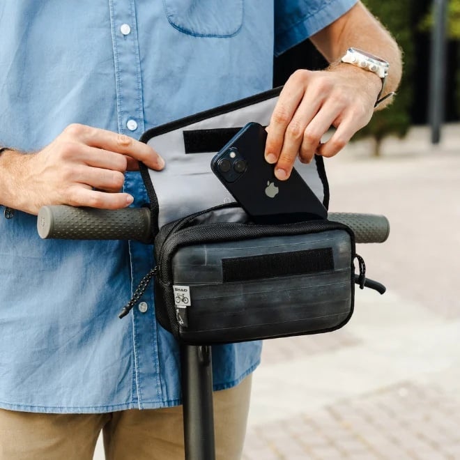 De Revive Bar Bag van het merk Shad is een stevige en compacte stuurtas en schoudertas met een inhoud van ca. 1 liter. De duurzame, slijtvaste tas is gemaakt van gerecyclede rubberen fietsbinnenbanden, die anders als afval waren geëindigd. Een hippe, veelzijdige stuurtas voor dagelijks gebruik!