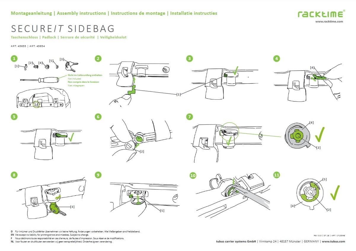 Het slot Secure-it Sidebag van Racktime is geschikt voor de Racktime fietstassen Mia, Liva en Mare.