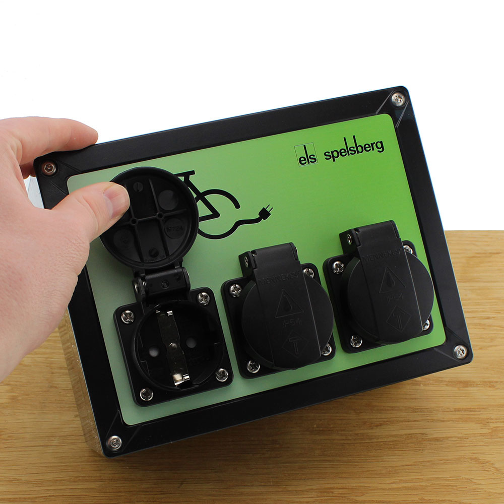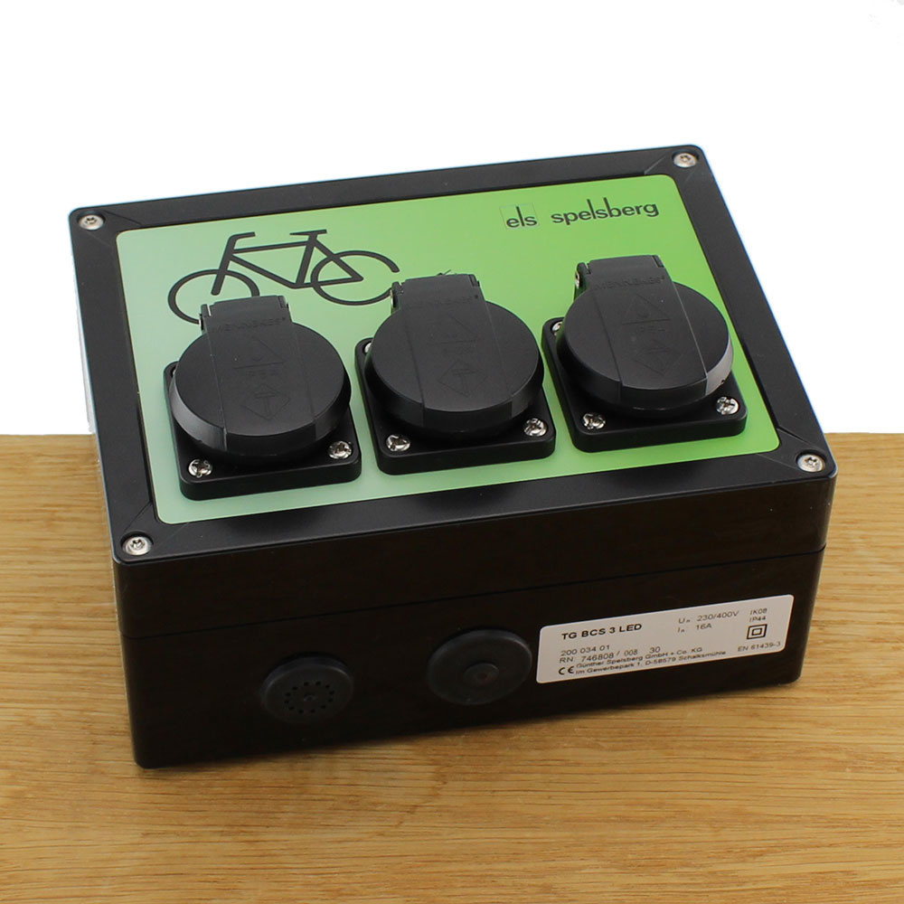 Met dit 3-voudig uitgevoerde fietsoplaadpunt van Spelsberg kunt u 3 fietsen gelijktijdig opladen. Het is een hoogwaardige wandcontactdoos die buiten te gebruiken is als laadstation/ oplaadpunt voor fietsen.