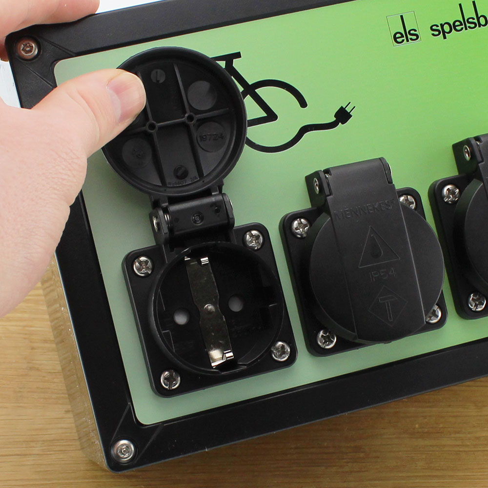 Door de IP44 veiligheidsgraad kunt u deze wandcontactdoos veilig buiten plaatsen.