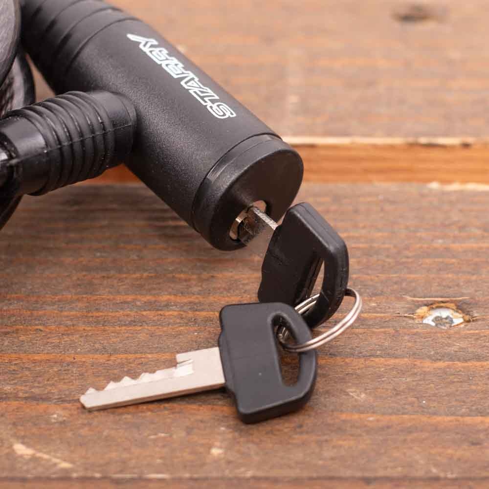 Dit kabelslot is gemaakt van gehard staal, 8mm dik en 150cm lang.