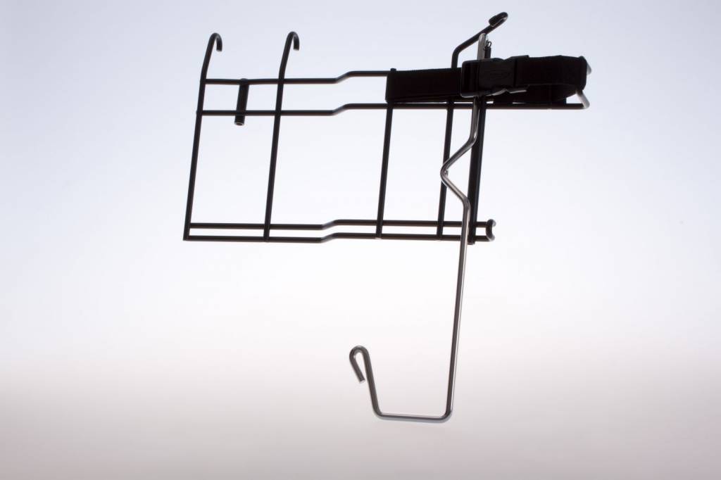 Een extra veilig detail is het feit dat de ophangbeugel automatisch wegklapt. Daarnaast is er een sterke, aansnoerbare spanband. Zo blijft de drager compact en heeft u er onderweg, net als uw medeweggebruikers, geen last van.