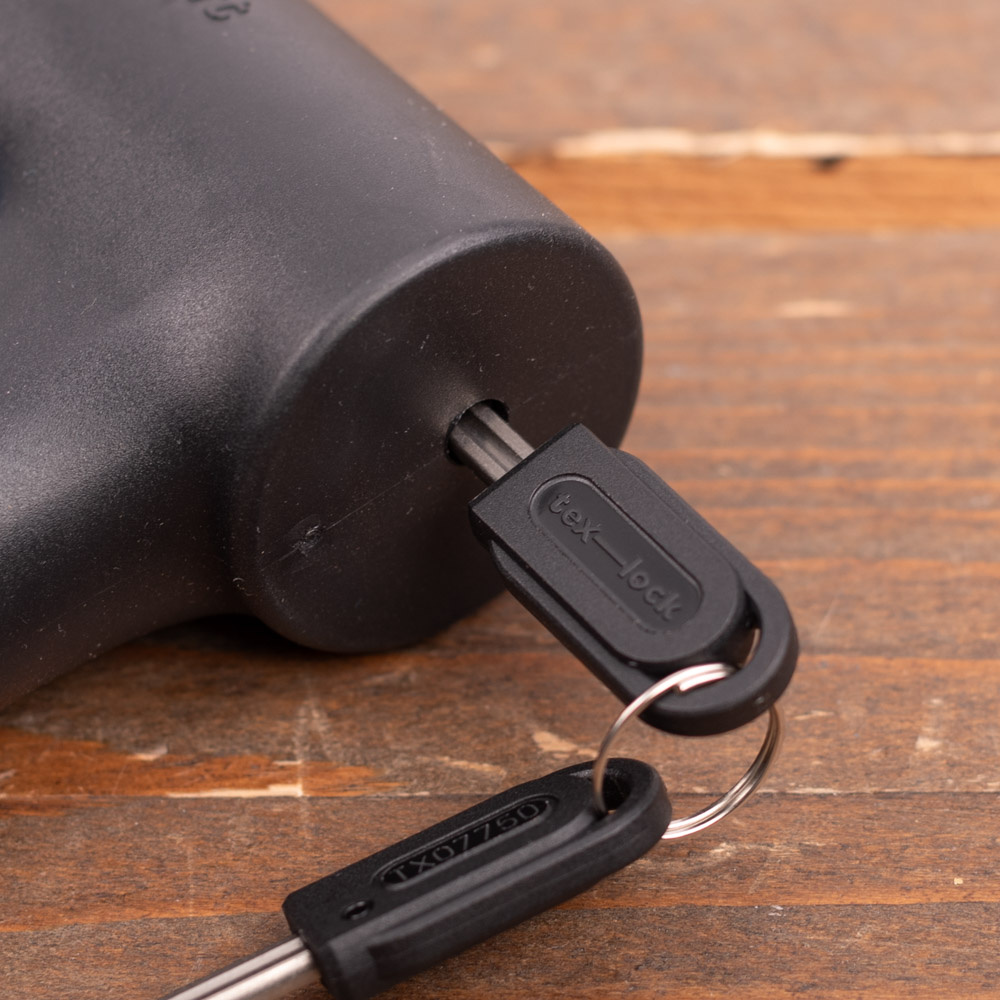 Sloten van Tex-Lock zijn er in meerdere varianten. Zo zijn er naast deze Orbit ook de Eyelet-sloten met een U-lock hangslot. Standaard bij alle varianten van de Tex-Lock sloten is een mooi, draaibaar/schuifbaar cilinderschuifje ter bescherming tegen vocht, zand en stof. Er wordt ook altijd een reservesleutel meegeleverd. Verder zitten de verschillen tussen de sloten 'm in: