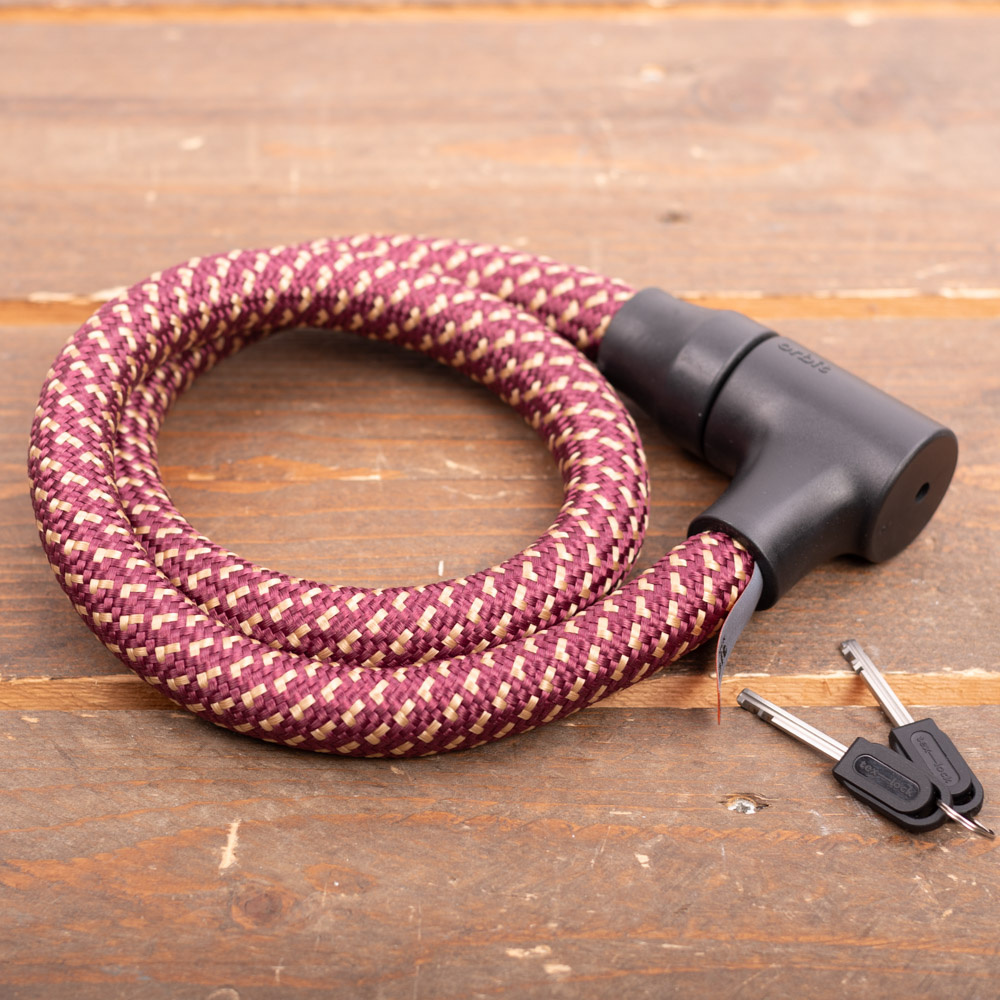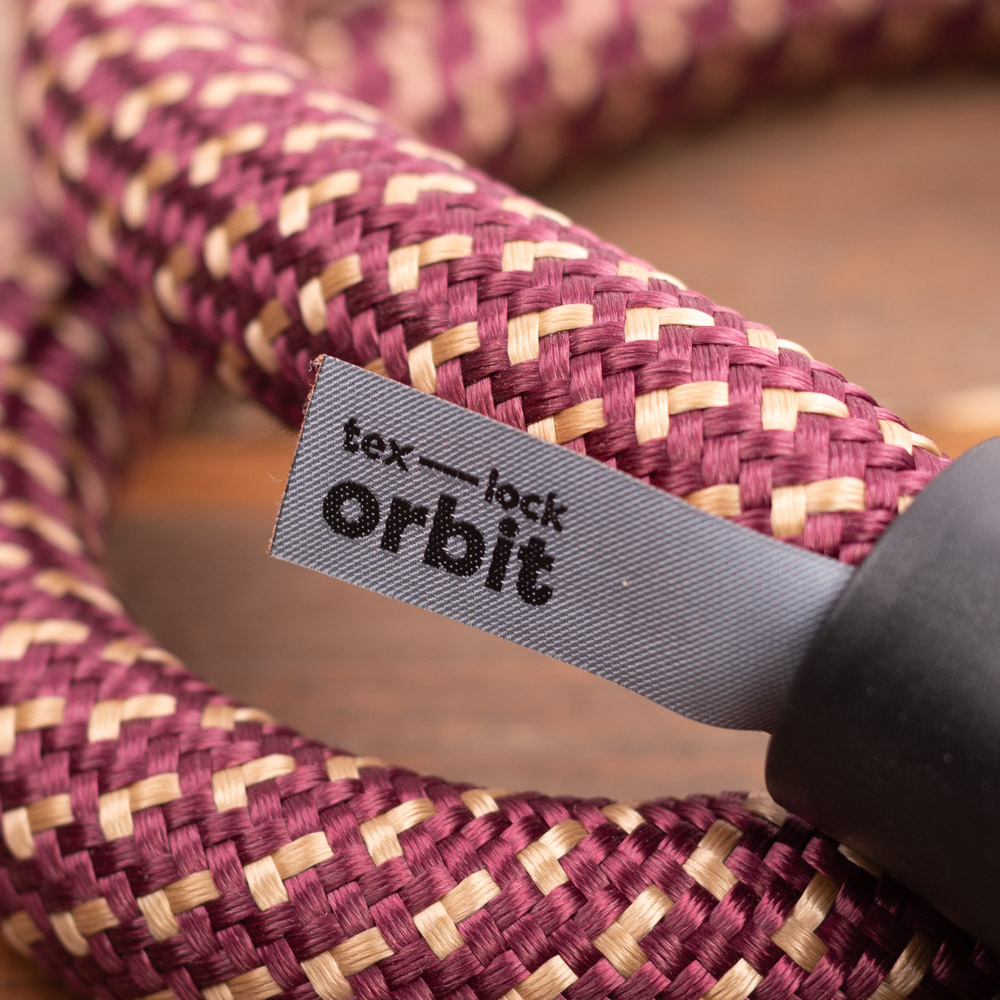 De unieke Tex-Lock Orbit is opgebouwd uit meerlaags textielcomposiet en is ART-2 gecertificeerd. De robuuste, maar zachte vezels van de Tex-Lock Orbit vormen hét alternatief voor een veel zwaarder en minder flexibel stalen slot. Dit high-end slot voelt zijdezacht aan, is zeer flexibel en licht. Het slot veroorzaakt geen krassen op de lak van uw fiets en rammelt niet. Alles aan dit in Duitsland gemaakte textielslot is van de hoogste kwaliteit. Deze Orbit is uitgevoerd in de kleuren paarsrood en beige.