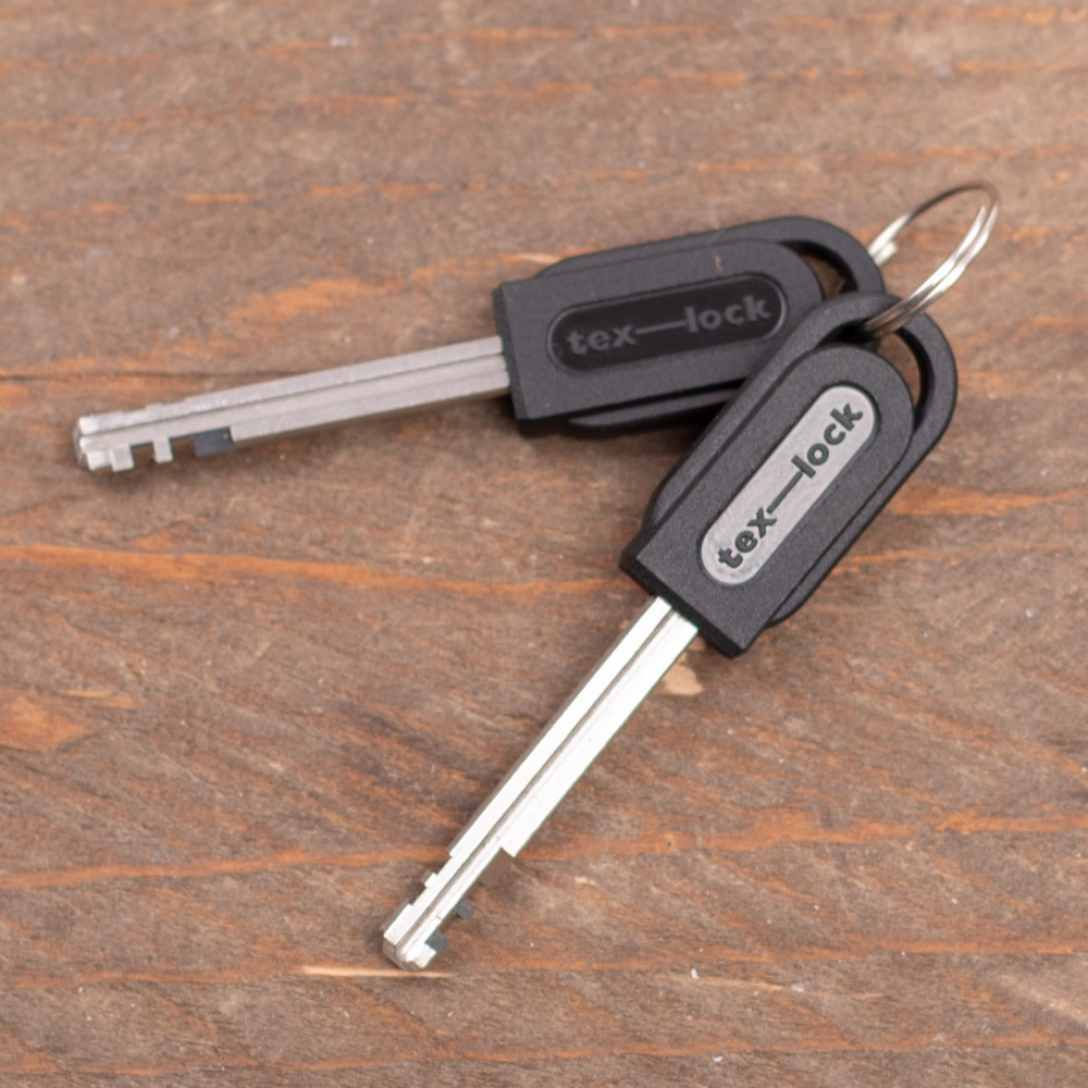 Dankzij de slimme Tex–Lock sluitcilinder heeft u de sleutel alleen nodig om het slot te openen. Wanneer u uw fiets vastzet, kunt u het slot dus gewoon vastklikken en klaar!