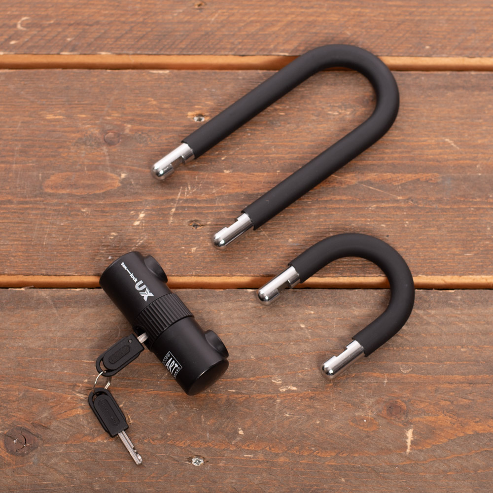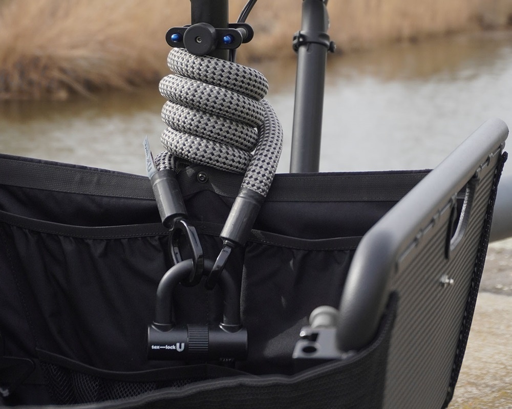>>> De Tex-Lock die u hier ziet, is voorzien van zowel de compacte U-Lock als de langere X-Lock.