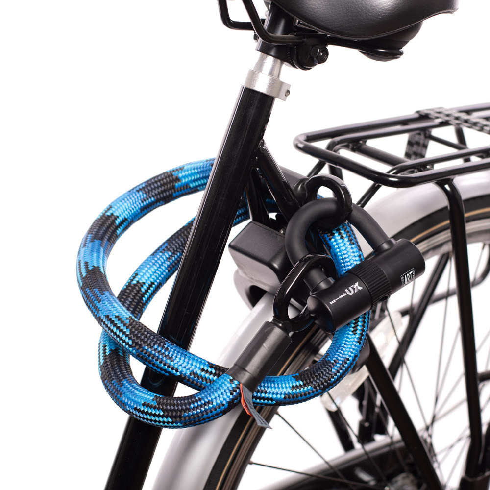De unieke Tex-Lock Eyelet is opgebouwd uit meerlaags textielcomposiet en is ART-2 gecertificeerd. De robuuste, maar zachte vezels van de Tex-Lock Eyelet vormen hét alternatief voor een veel zwaarder en minder flexibel stalen slot. Dit extra lange high-end slot voelt zijdezacht aan, is zeer flexibel en erg licht. Veroorzaakt geen krassen op de lak van uw fiets, rammelt niet en biedt nog extra mogelijkheden om de fiets tegen diefstal te beschermen. Alles aan dit in Duitsland gemaakte textielslot is van de hoogste kwaliteit.