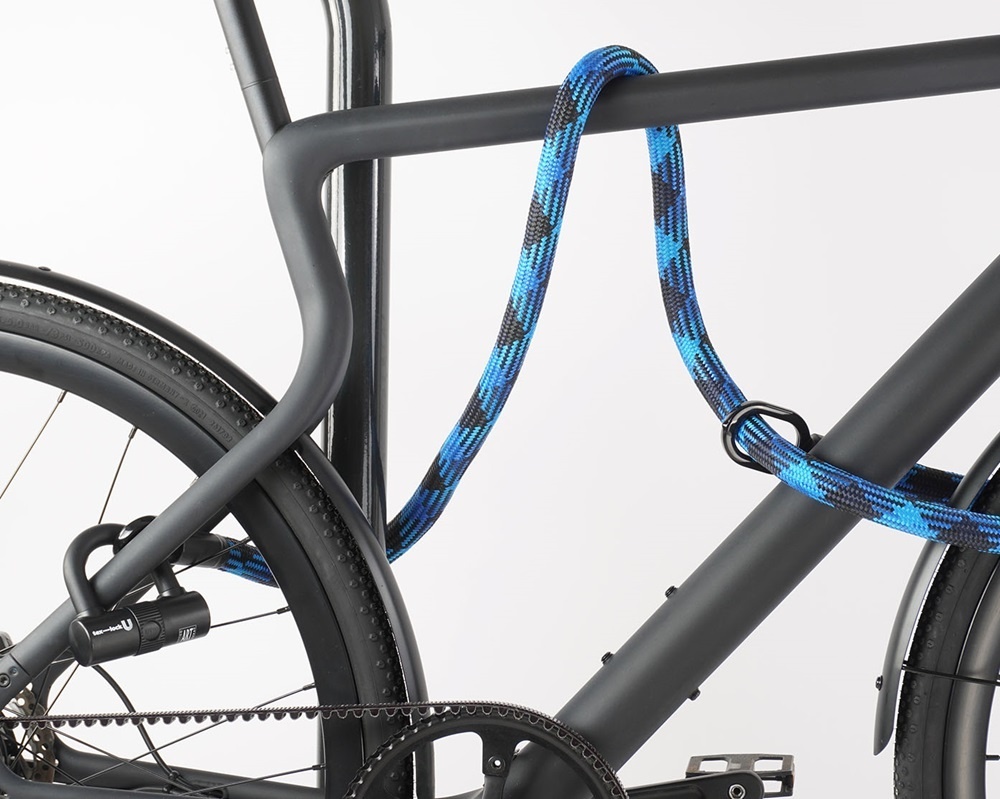 De unieke mate van flexibiliteit van de Tex-Lock biedt extra gemak bij het écht veilig op slot zetten van de fiets. U kunt uw fiets vastzetten aan een fietsenrek, lantaarnpaal, boom of een ander vaststaand object. Gebruik het doorlusprincipe om verschillende fietsonderdelen tegelijk vast te maken. Plaats de kabel rond twee onderdelen en trek het kleine oog door het grotere oog aan het andere uiteinde. Gebruik vervolgens de kabel en het U-slot om andere waardevolle fietsonderdelen aan een vast object vast te maken.