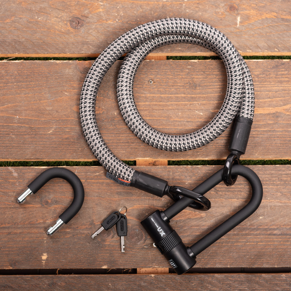 >>> De Tex-Lock die u hier ziet, is voorzien van zowel de compacte U-Lock als de langere X-Lock.