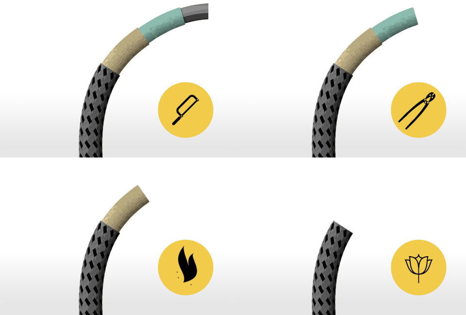 Het slot heeft een mooi design. Maar het belangrijkst is de (gepatenteerde) constructie; van onder andere hightech vezellagen. Elke laag van het textielcomposiet vervult een specifieke functie. Zo is de zaagweerstand gegarandeerd dankzij de gehard metalen kern. De speciale molecuulstructuur weert gemakkelijk 'aanvallen' van betonscharen en messen af. Het complete geheel van de lagen waaruit het slot is opgebouwd, beschermt bovendien uitstekend tegen vuur (vuurvast tot minimaal 1000 graden Celsius). Maar ook tegen zagen, snijden en hefboom- en trekkrachten.