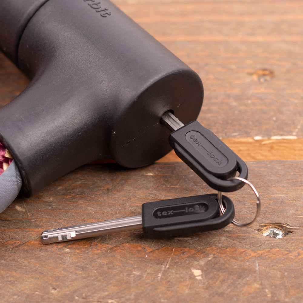 Dankzij de slimme Tex–Lock sluitcilinder heeft u de sleutel alleen nodig om het slot te openen. Wanneer u uw fiets vastzet, kunt u het slot dus gewoon vastklikken en klaar!