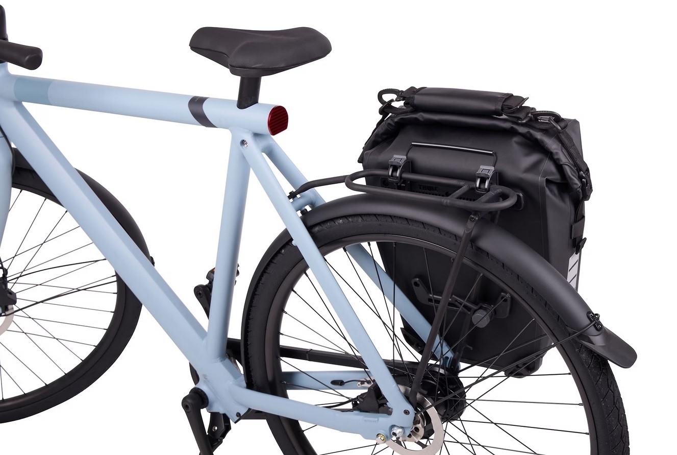 De fietstas van Thule heeft nog meer handige opbergmogelijkheden. Voorop de tas zit een waterproof ritsvak met daarin een sleutelclip. Zo hoeft u nooit naar uw sleutels te zoeken. Aan de lussen op de voorkant van de tas kunt u een fietshelm bevestigen. Daarnaast heeft de tas een schouderriem met comfortabele padding, voor wanneer u te voet verder gaat. Deze schouderriem wordt tijdens het fietsen aan het handvat bovenop de tas bevestigd, zodat deze niet tussen de spaken kan komen.