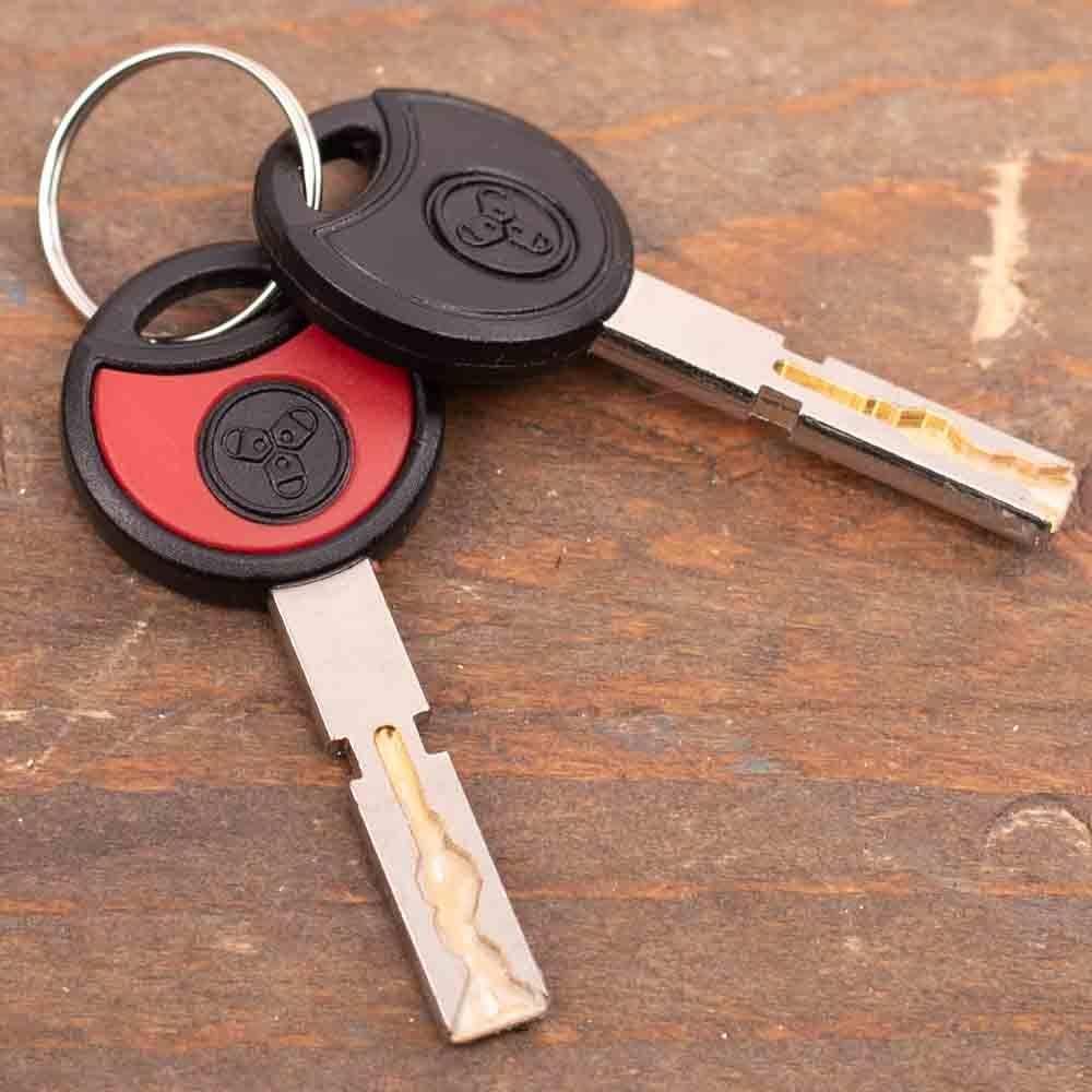 - Het slot wordt geleverd met twee symmetrische sleutels. Als u een sleutel kwijt bent, kunt u gemakkelijk via de sleutelservice een nieuwe sleutel bestellen.