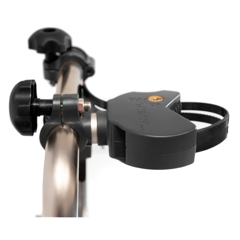De spanelementen aan beide beugels zijn 'lief' voor het fietsenframe en beschikken over een slotje. De fietsen staan veilig vast, in combinatie met de eveneens stevige, verstelbare bandjes in de subtiel vormgegeven wielgootjes.