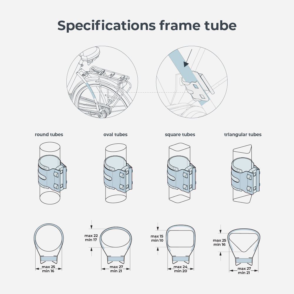 Het praktische en stevige fietszitje wordt inclusief een MIK HD-adapter geleverd, waarmee het zitje rechtstreeks op een MIK HD-bagagedrager kan worden vastgeklikt. Een MIK HD-drager is te herkennen aan de letters 'MIK HD' die erop staan. Er is geen montagemateriaal of gereedschap meer nodig! Voor extra veiligheid is het zitje voorzien van een bevestigingsband, die om het frame kan worden bevestigd. Voor montage van de voetsteunen is een framebuis (achtervork) met een diameter van 16-25 mm nodig.