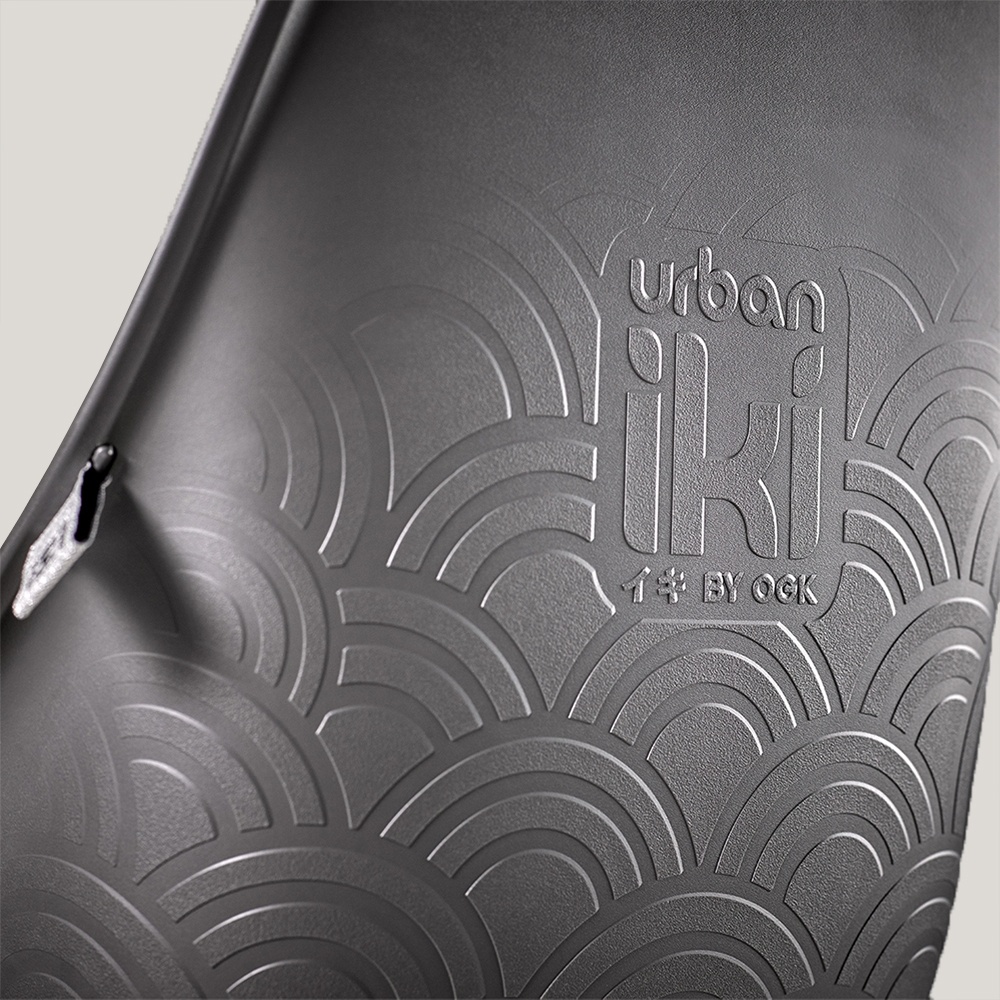 Het Iki-gevoel komt onder meer tot uiting in het rustige, trendy Dutch Design. Dit stoeltje is ook opvallend compact, met aandacht voor stijl. Het Urban Iki-achterzitje heeft een ronde, elegante belijning. Als speciaal tintje is er aan de buitenzijde de gravure van een Japans golfpatroon, dat symbool staat voor 'pieken van geluk'. Zelfs de veiligheidsgordel is er in een speciaal geweven patroon: niet gewoon standaard zwart, maar met een mix van grijstinten.