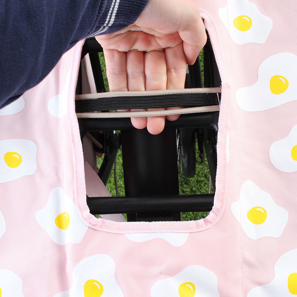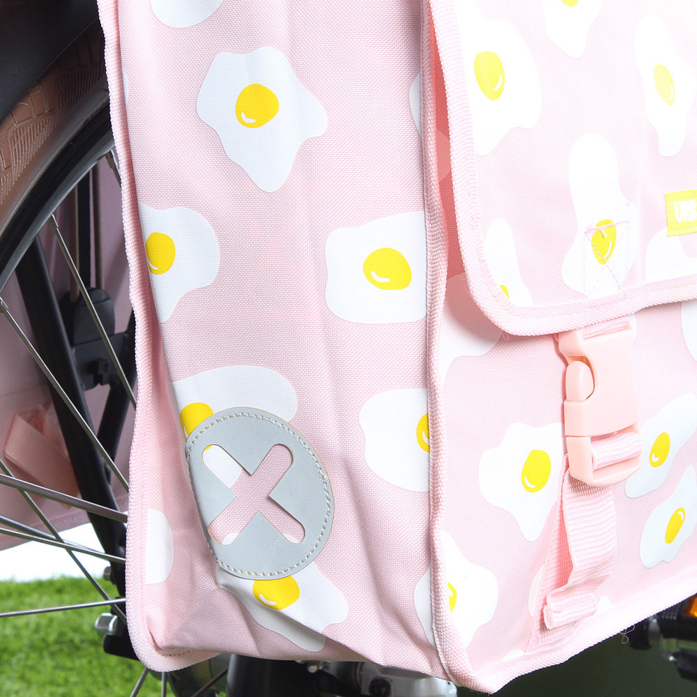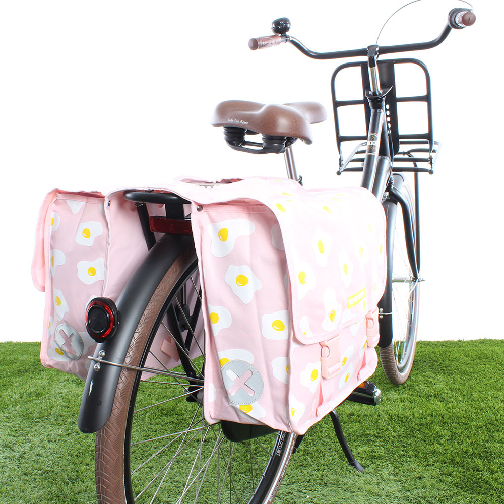 De gehele binnenzijde is roze, maar aan de buitenzijde is deze dubbele fietstas gesierd met grappige gebakken eitjes. Voor meer praktische en betaalbare fietstassen en fietsaccessoires met opvallen design, neemt u een kijkje bij de gehele Urban Proof collectie.