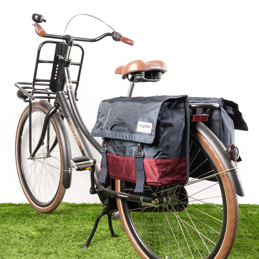 Urban Proof Dubbele fietstas 40L Recycled - Bordeauxrood/Grijs
