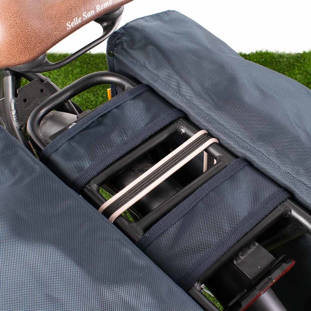 U bevestigt de tas eenvoudig en snel aan uw bagagedrager met riempjes. Er is een uitsparing gemaakt in de brug van de tas, zodat u nog bij uw snelbinders kunt. Deze fietstas is ook geschikt voor e-bikes.