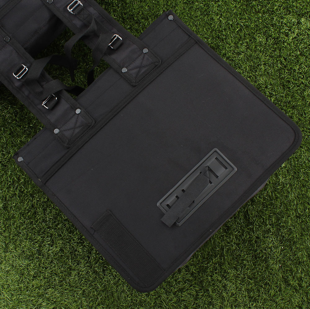 De dubbele tas heeft twee grote opbergvakken met een totale inhoud van 55 liter. In deze twee hoofdvakken zit een klein steekvakje. De bodem en de achterkant van de tas zijn verstevigd, zodat u er ook zwaardere spullen zoals boodschappen mee kunt vervoeren. De tas sluit met chromen haken.
