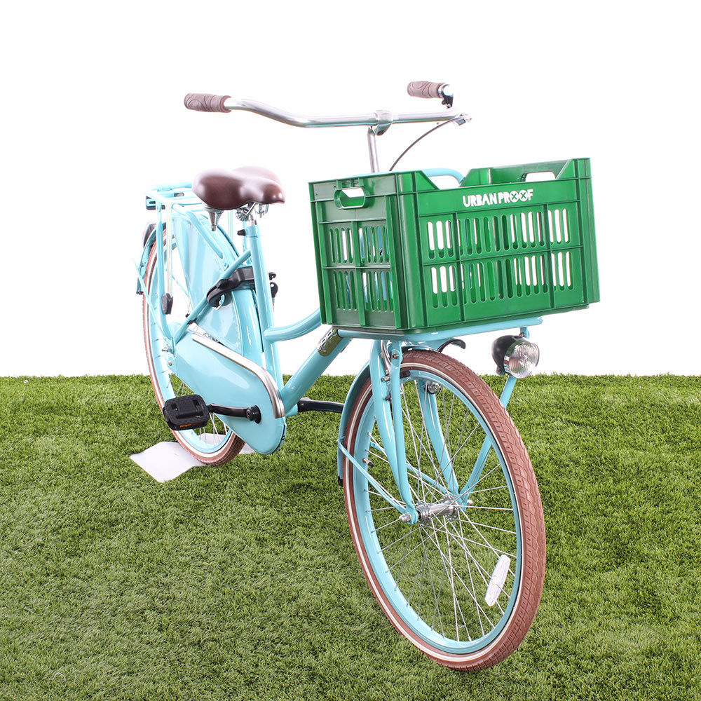 Dit fietskrat is gemaakt van gerecycled materiaal en is uitgevoerd in de kleur donkergroen. Het is van het Amsterdamse merk Urban Proof, maar ook voor fietsliefhebbers buiten de stad is het een ideaal krat om behoorlijk wat in mee te kunnen nemen. Letterlijk een bak vol, dankzij de inhoud van 30 liter. En toch is-ie compact en hanteerbaar, met zijn afmetingen van 40 bij 30 bij 25,5 centimeter. Evenals licht, tot voor een fietskrat zelfs erg licht: 800 gram.