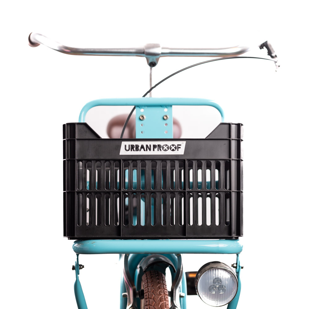 Deze duurzame zwarte fietskrat van het Amsterdamse merk Urban Proof is gemaakt van gerecycled plastic en geproduceerd in Europa voor een kleinere ecologische voetafdruk. De junior fietskrat heeft op de voorkant een opvallend wit logo met reflectie. De fietskrat is geschikt voor elke kinderfiets met een voor- of achterdrager.