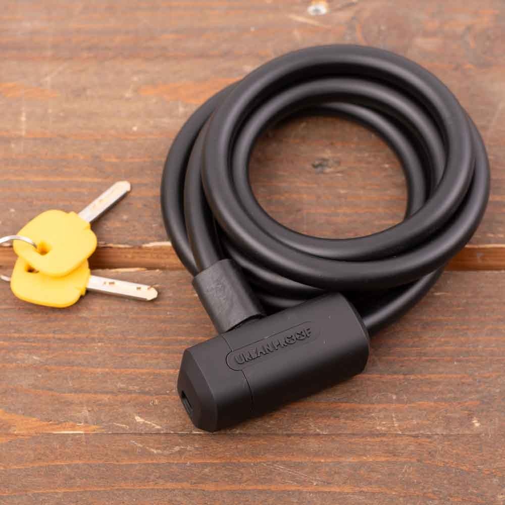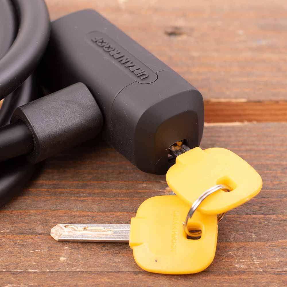 De stalen kabel heeft een dikte van 12 millimeter en is omhuld met een zwarte coating zodat de lak van uw fiets krasvrij blijft. Het slot heeft een precisie-slotcilinder met antidiefstalbeveiliging en wordt geleverd met twee sleutels met een gele sleutelhoes. Het kabelslot kan compact worden opgerold en is daardoor gemakkelijk mee te nemen.