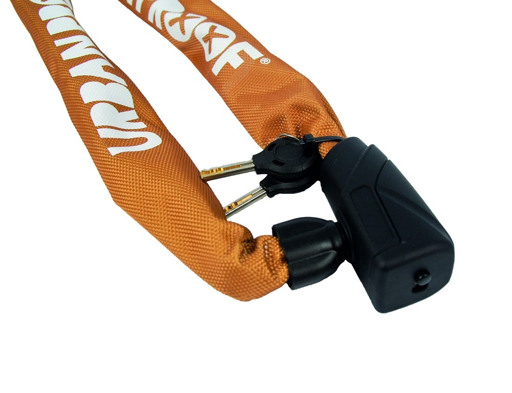 De schakels van het slot zijn gemaakt van gehard staal, en hebben een dikte van 8 millimeter. Met slotcilinder anti-diefstal beveiliging. Het slot wordt geleverd met twee sleutels.