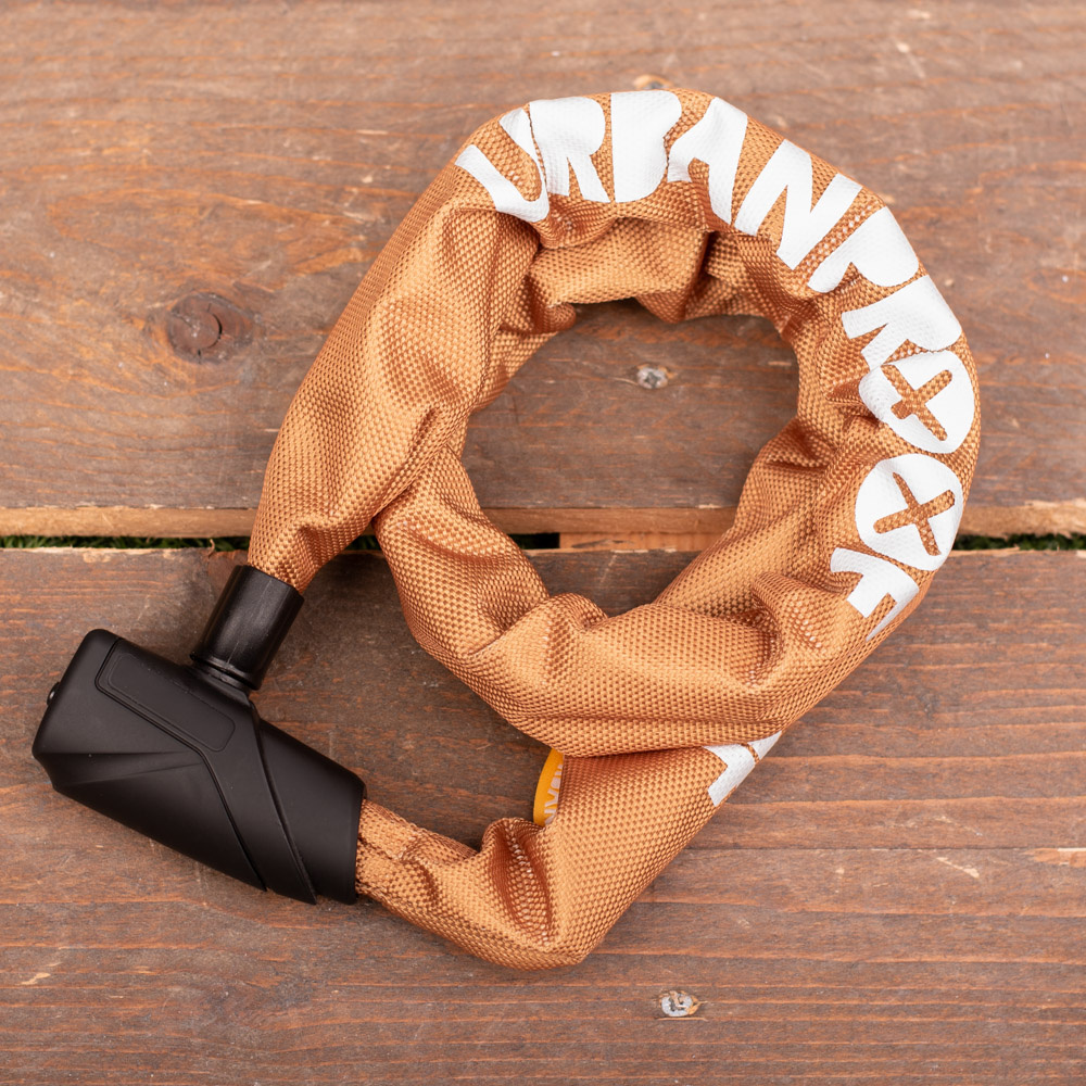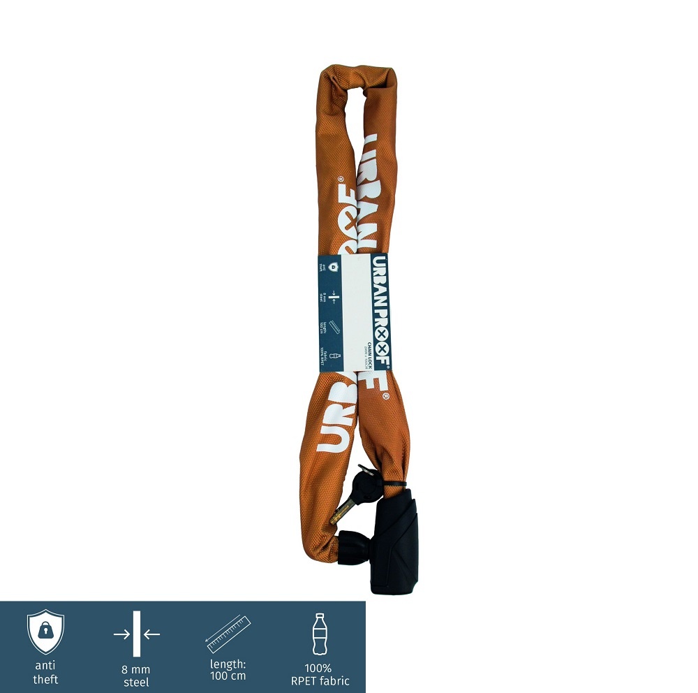 Met dit sterke stalen kettingslot van Urban Proof beveiligt u uw fiets optimaal. Het fietsslot heeft een lengte van 100 centimeter en een okergele hoes van duurzaam materiaal.