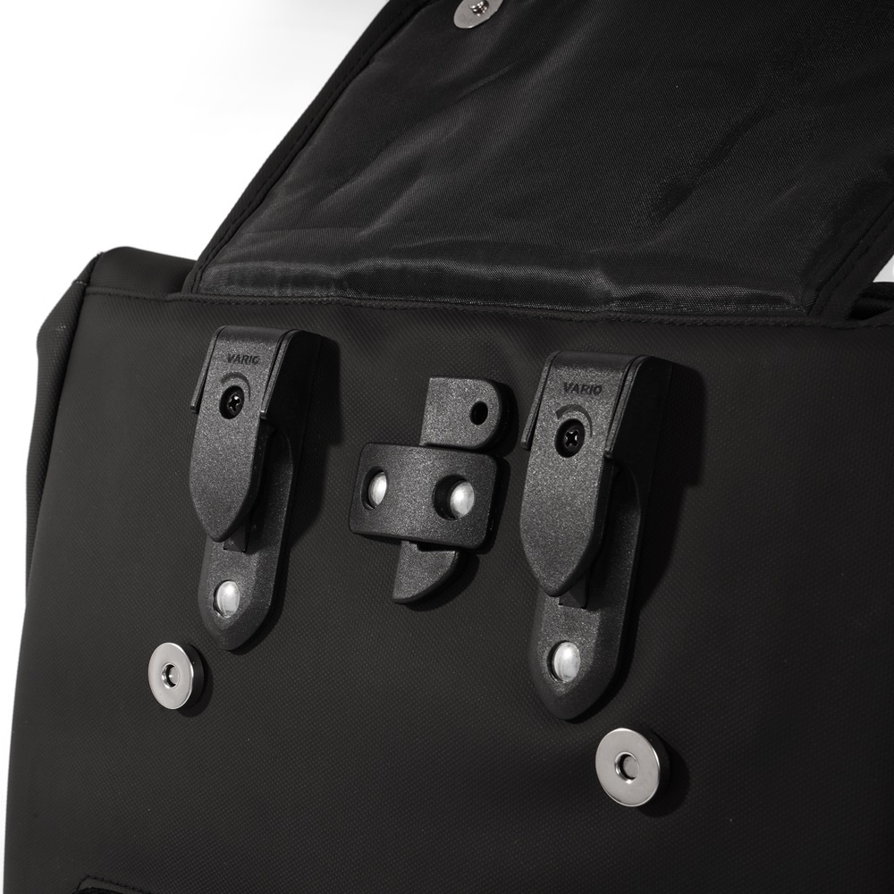 Op de fiets naar school of kantoor? Dan bevestigt u de pakaftas aan uw bagagedrager met de twee Vario Fix-haken achterop de tas. Wanneer u de tas van de fiets heeft gehaald, kunt u deze haken verbergen achter een klep met drukknopen. De tas is ook geschikt voor e-bikes. Van de fiets af draagt u de tas comfortabel als rugtas, dankzij het gevoerde en ventilerende rugpaneel en de verstelbare schouderbanden en borstband. Tijdens het fietsen kunt u het rugpand beschermen tegen de regen met de regenhoes die u in een ritsvak onderin vindt.