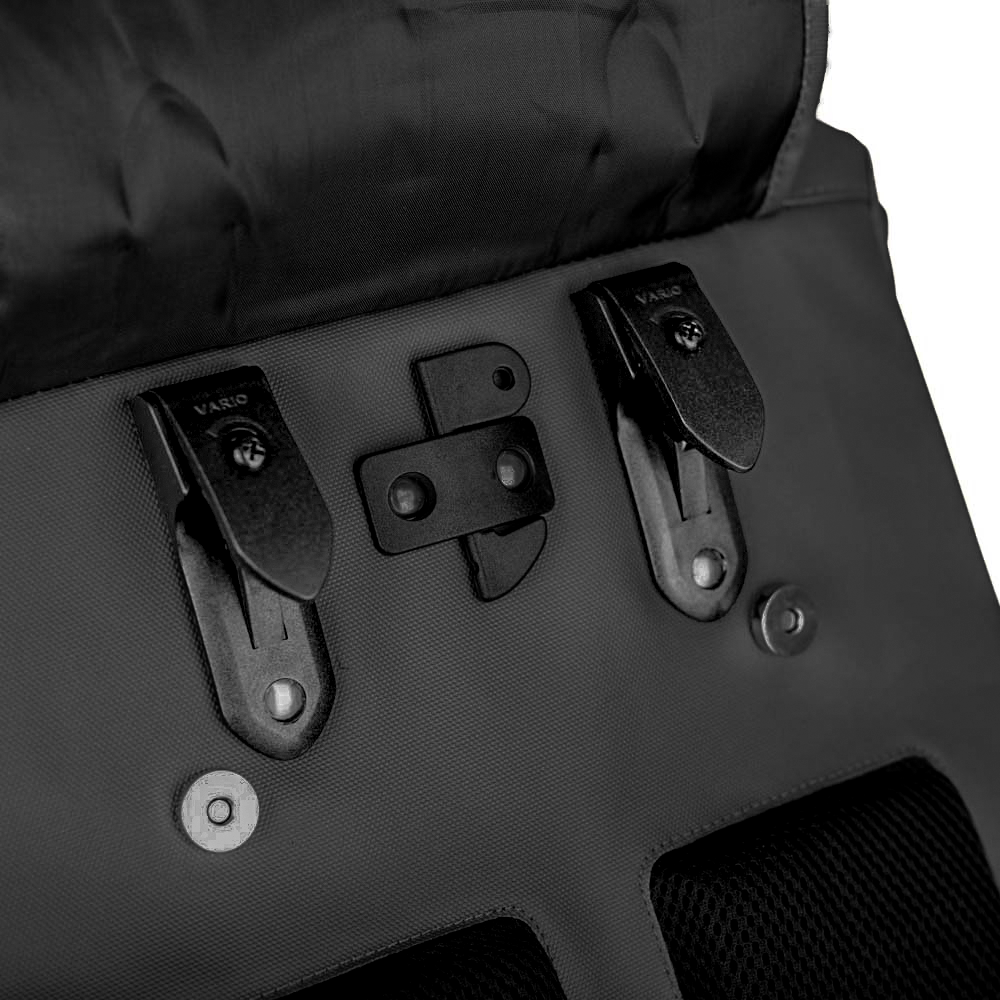 Op de fiets naar school of kantoor? Dan bevestigt u de pakaftas aan uw bagagedrager met de twee Vario Fix-haken achterop de tas. Wanneer u de tas van de fiets heeft gehaald, kunt u deze haken verbergen achter een klep met drukknopen. De tas is ook geschikt voor e-bikes. Van de fiets af draagt u de tas comfortabel als rugtas, dankzij het gevoerde en ventilerende rugpaneel en de verstelbare schouderbanden en borstband. Tijdens het fietsen kunt u het rugpand beschermen tegen de regen met de regenhoes die u in een ritsvak onderin vindt.