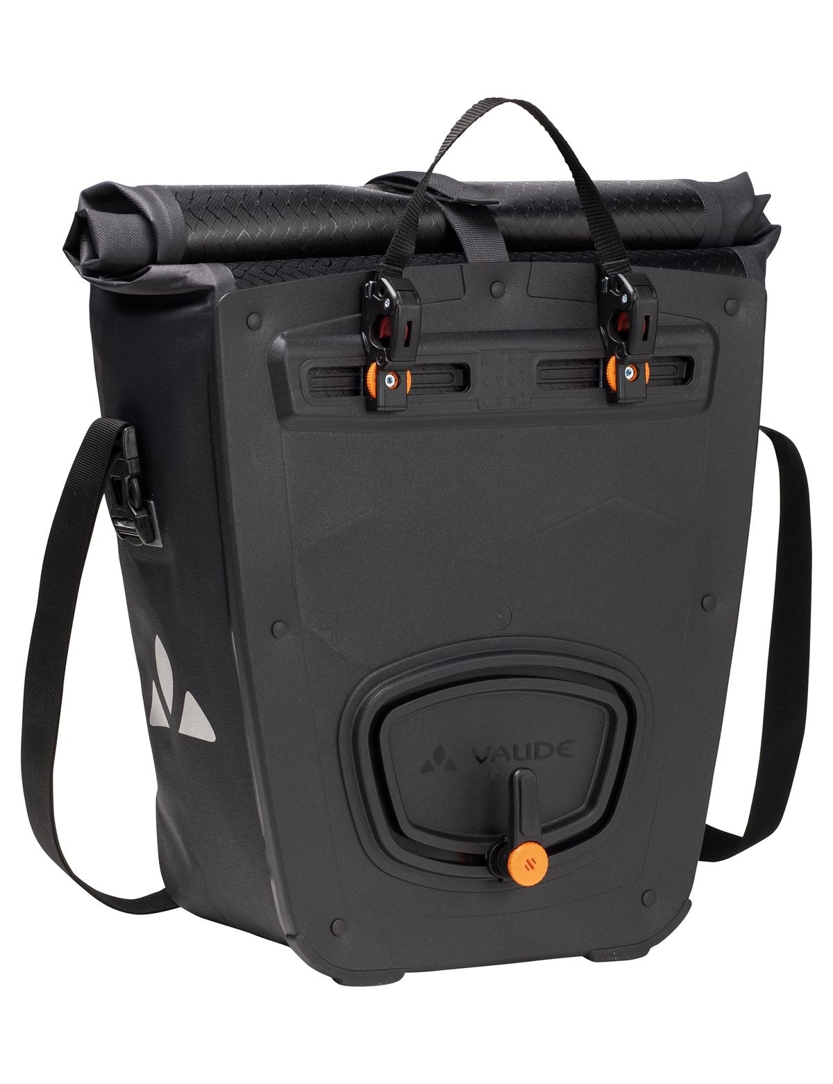 Dit is met recht een pakaftas, door het unieke bevestigingssysteem van Vaude - Quick Mount Release 2.0 (QMR) - dat ervoor zorgt dat het afnemen van de tas in één beweging gebeurt. Even trekken aan het handvat dat gekoppeld is aan het kliksysteem, en de haken klikken soepel los van de bagagedrager. Wilt u de tas te voet meenemen? Geen probleem met de afneembare en tevens verstelbare schouderband. Het is ook mogelijk om de QMR-haken te vergrendelen met bijvoorbeeld een ABUS 145/20 hangslot. Zo kunt u de tas op de fiets laten zitten en gaat u diefstal tegen. Een slotje is apart verkrijgbaar (zie gerelateerde producten).