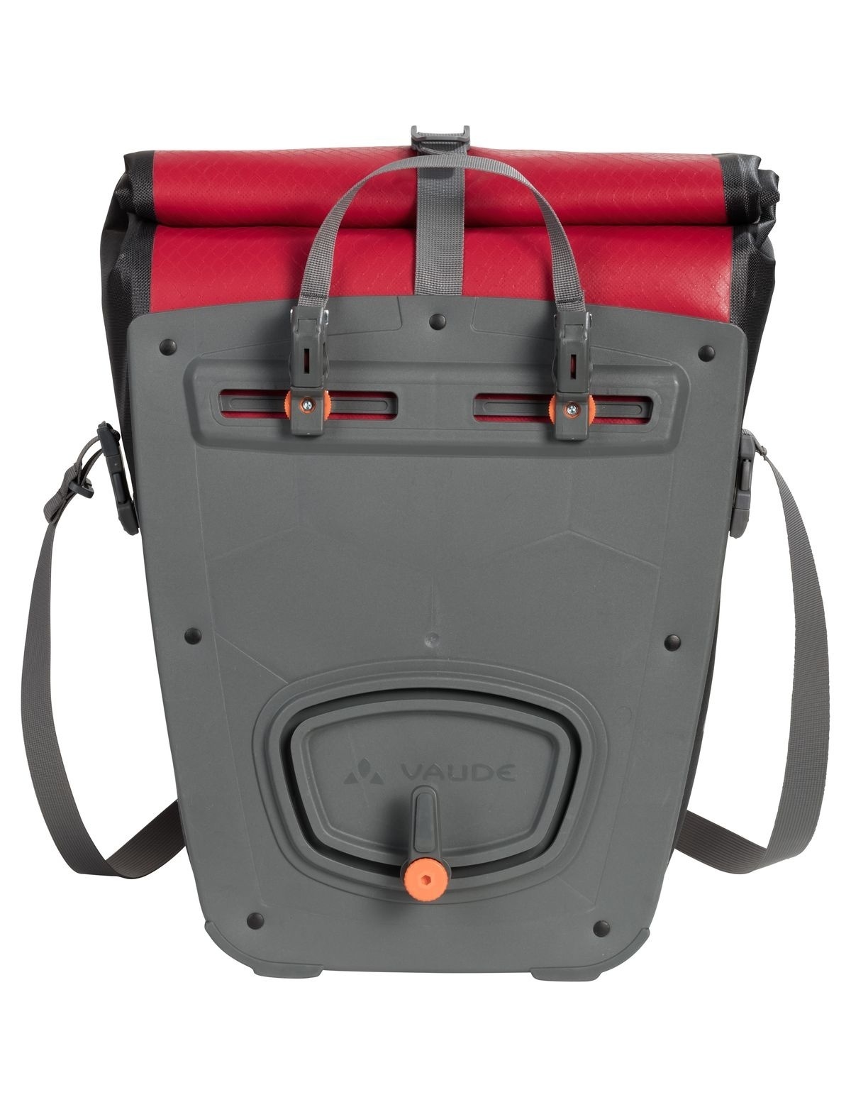 De Aqua Back Plus Single is een enkele fietstas voor achterop de fiets, van het merk Vaude. Wat direct opvalt is de hoge kwaliteit van deze robuuste rode fietstas. De tas is door de waterdichte wikkelsluiting (zowel naar boven als naar onder afsluitbaar) in grootte verstelbaar, en voorzien van reflectie en een afneembare schouderband.