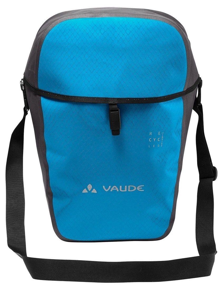 De Aqua Commute Single van kwaliteitsmerk Vaude is een waterdichte enkele fietstas voor achterop de fiets. De stevige blauwe fietstas is gemaakt van duurzaam PVC-vrij canvas en heeft een inhoud van 24 liter. Dankzij het laptopcompartiment, de organiser en de schouderband is de fietstas ideaal voor fietsforenzen!