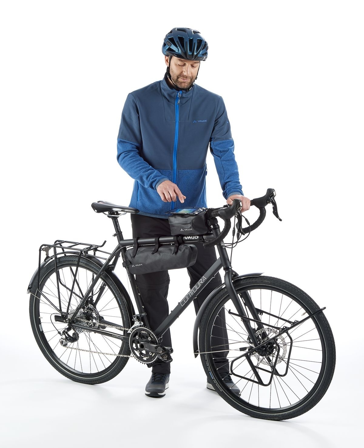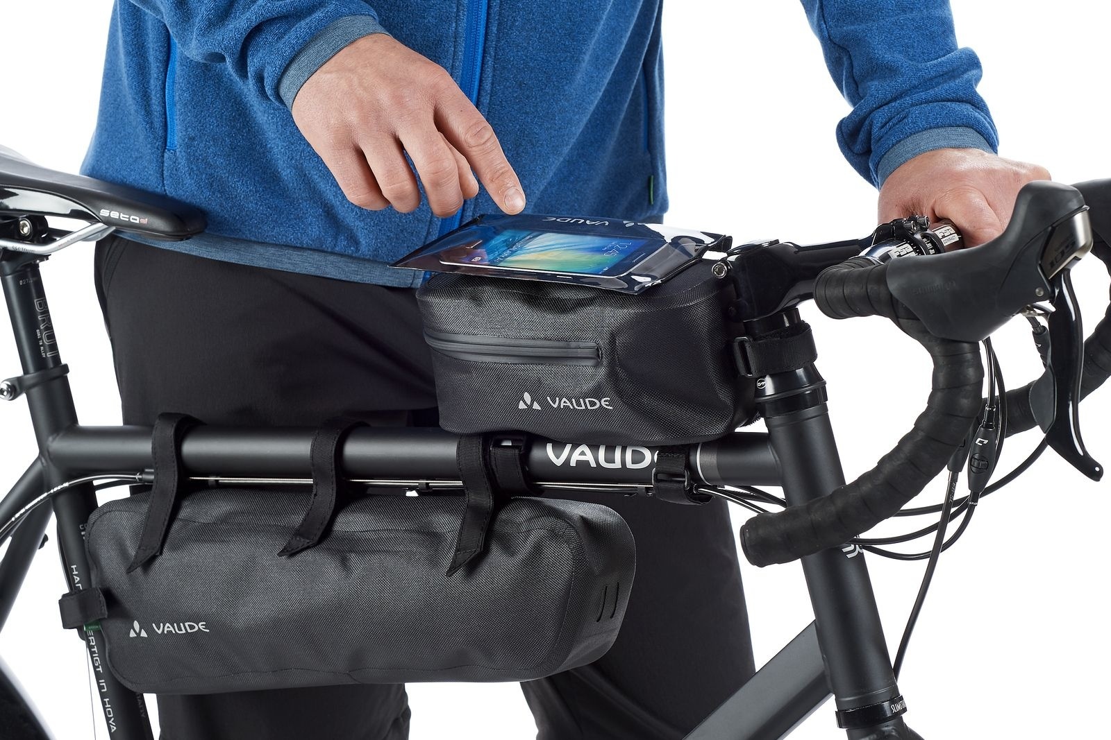 De Carbo Guide Bag Aqua van Vaude zorgt ervoor dat u al fietsende altijd het belangrijkste voor het grijpen hebt. Met een ritsvak (met waterdichte rits) waarin voor 0,3 liter inhoud aan spulletjes past, en bevestigd op het bovenbuisframe, is het slechts een kwestie van een paar seconden voordat u die reep, dat pinpasje of die zonnebril te pakken hebt - of er weer in hebt gelegd. Letterlijk daarbovenop heeft u óók uw smartphone / navigatie direct in het zicht, goed beschermd achter een transparant venster. Die hoes is waterdicht én makkelijk afneembaar (letterlijk en figuurlijk).