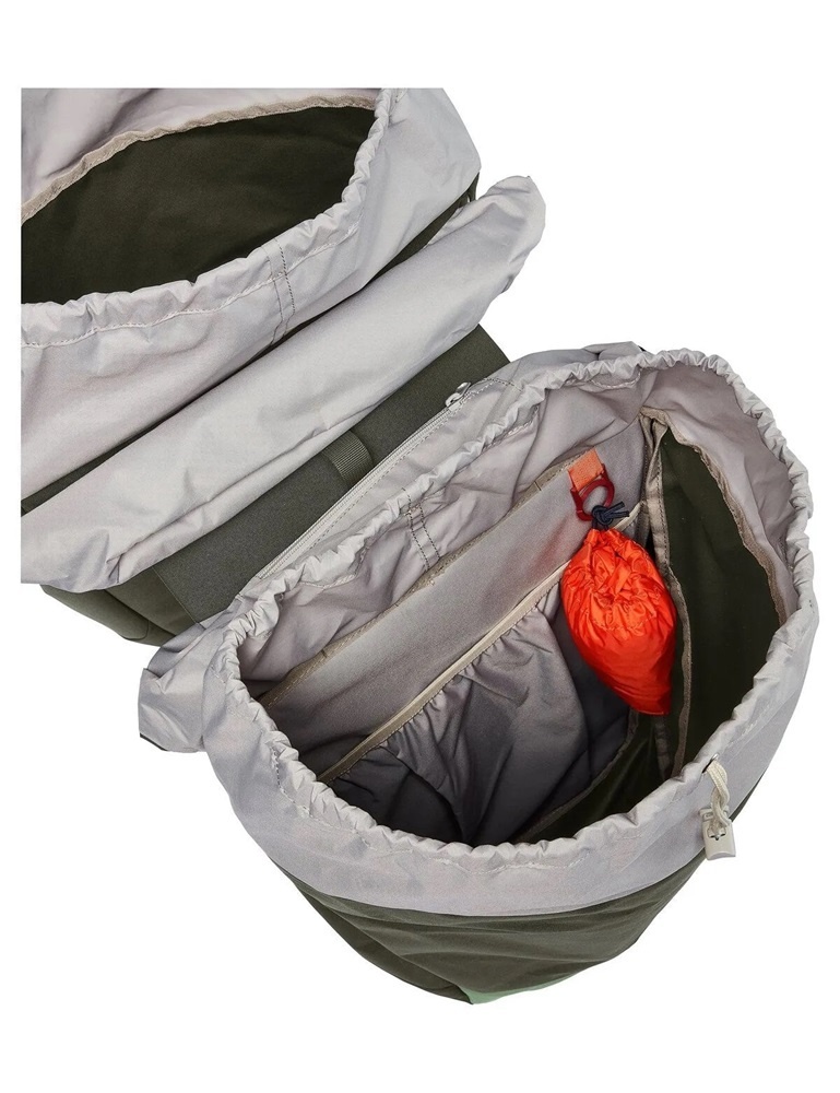 Uw spullen bergt u gemakkelijk op in de ruime hoofdvakken. Deze sluit u ten eerste met een aantrekkoord. Vervolgens gaat de dekselsluiting er overheen, die u vastzet met een klikgesp. Achterin het hoofdvak bevindt zich een steekvak en een sleutelclip. In een van de deksels zit aan de binnenkant een ritsvakje, waar u wat kleine spullen in kwijt kunt.