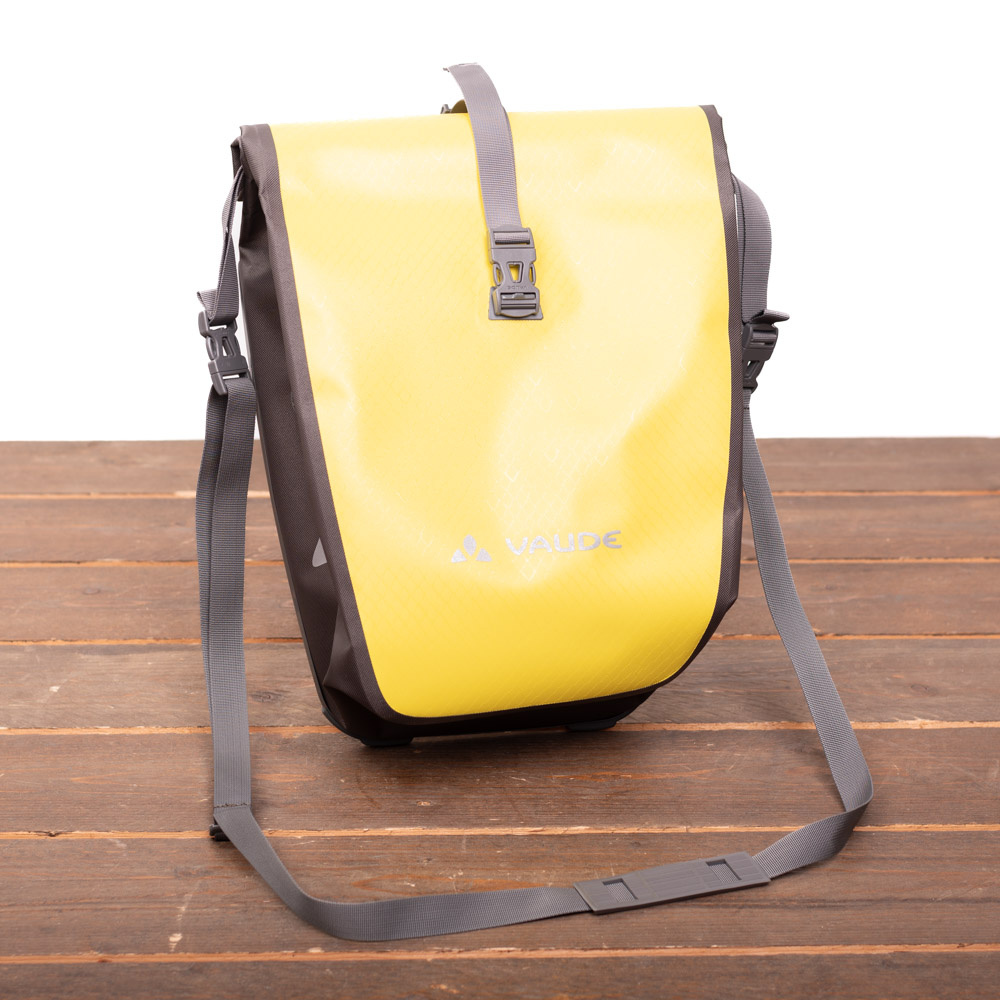 De Aqua Back Single is een enkele, gele fietstas van Vaude van uitstekende kwaliteit. De tas heeft een inhoud van 20 liter en is met de afneembare schouderband ook als schoudertas te dragen. Dankzij de reflecterende logo's bent u in het donker goed zichtbaar op de weg.