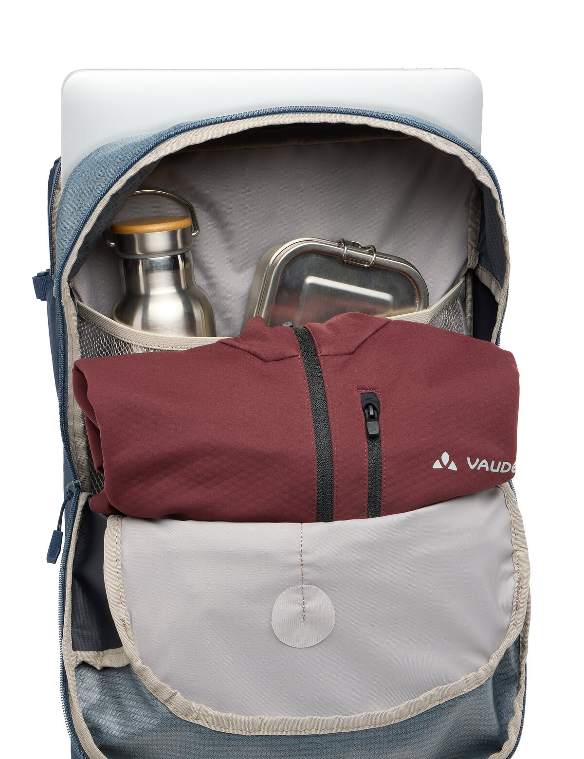 De tas heeft een ruim hoofdvak geschikt voor documenten op A4-formaat, met achterin een steekvak. Voorop de tas zit een kleiner ritsvak met daarin een handige organiser met veel verschillende vakjes, voor het overzichtelijk opbergen van kleinere spullen (telefoon, sleutels, etc.). Achter het hoofdvak is een apart, gevoerd vak aanwezig voor een laptop van maximaal 15,6 inch. En op de voorkant van de tas zit nog een klein ritsvak en een elastisch opbergvak van mesh. Ook is er gedacht aan reflecterende elementen en een speciale houder waar u ledlampjes aan kunt bevestigen.