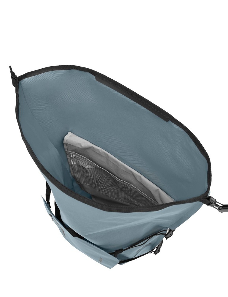De waterdicht gelaste fietstas heeft een brede opening en wordt met een flexibele rolsluiting aan de inhoud aangepast. Hoe meer inhoud, hoe hoger u de tas afsluit. De rolsluiting sluit met een klikgesp. Achterin de tas zitten een steekvak en een ritsvakje van mesh. Van de fiets af kan de tas comfortabel over de schouder worden gedragen met de in lengte verstelbare schouderband.