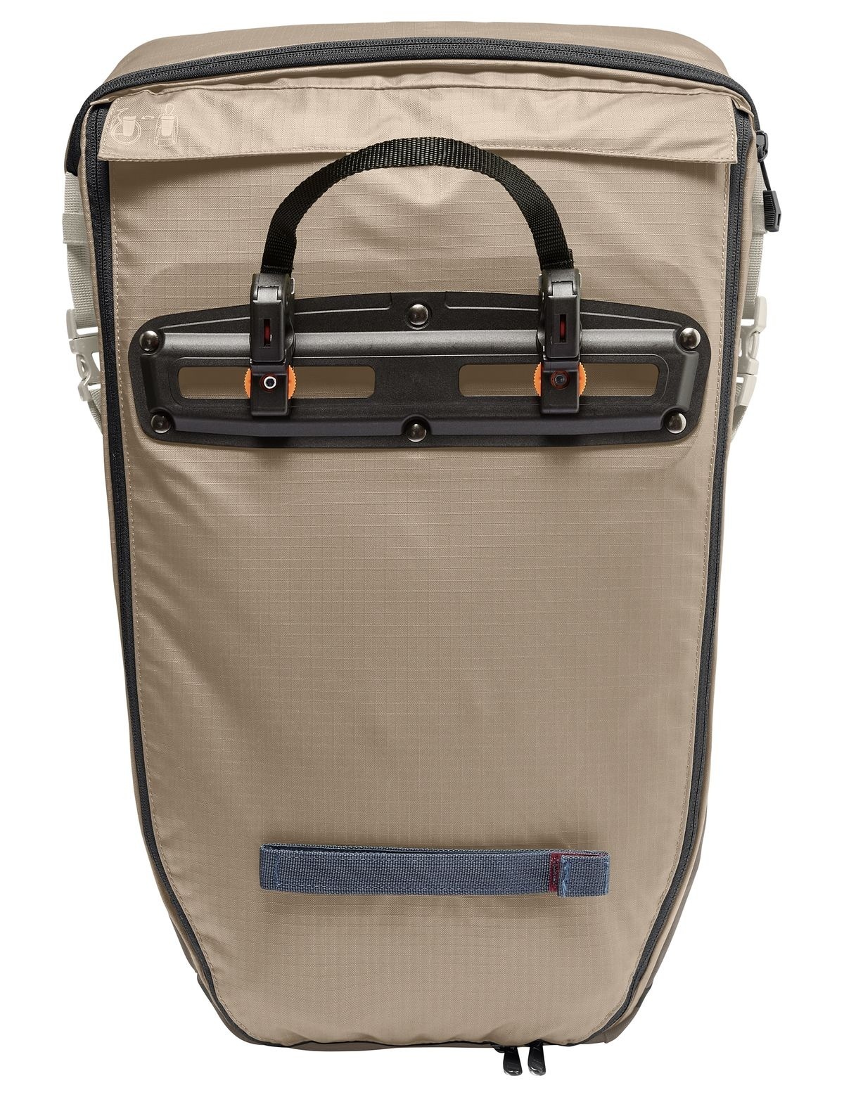 Deze moderne en veelzijdige fietstas en rugtas ineen van Vaude biedt ruimte voor 23 liter aan spullen, is gemaakt van gerecyclede materialen en is uitgevoerd in de kleuren beige en bruin, met turquoise details. De tas is slijtvast en weerbestendig, en is uitgerust met een laptopvak, een regenhoes en een handige organiserindeling. Een hele praktische tas voor dagelijks gebruik, waarmee u gemakkelijk kunt switchen tussen fietstas en rugtas!