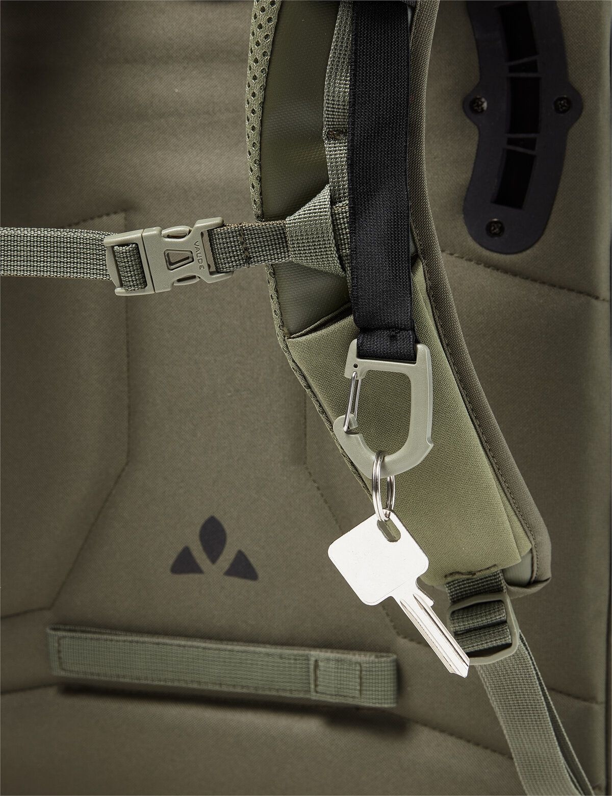 Aangekomen op uw bestemming? Dan kunt u de Plug and Ride-rail verwijderen en opbergen. U draagt de rugtas comfortabel dankzij de verstelbare, gevoerde schouderbanden met borstriem. Aan een van de schouderbanden is een praktisch elastiek met een sleutelclip bevestigd.